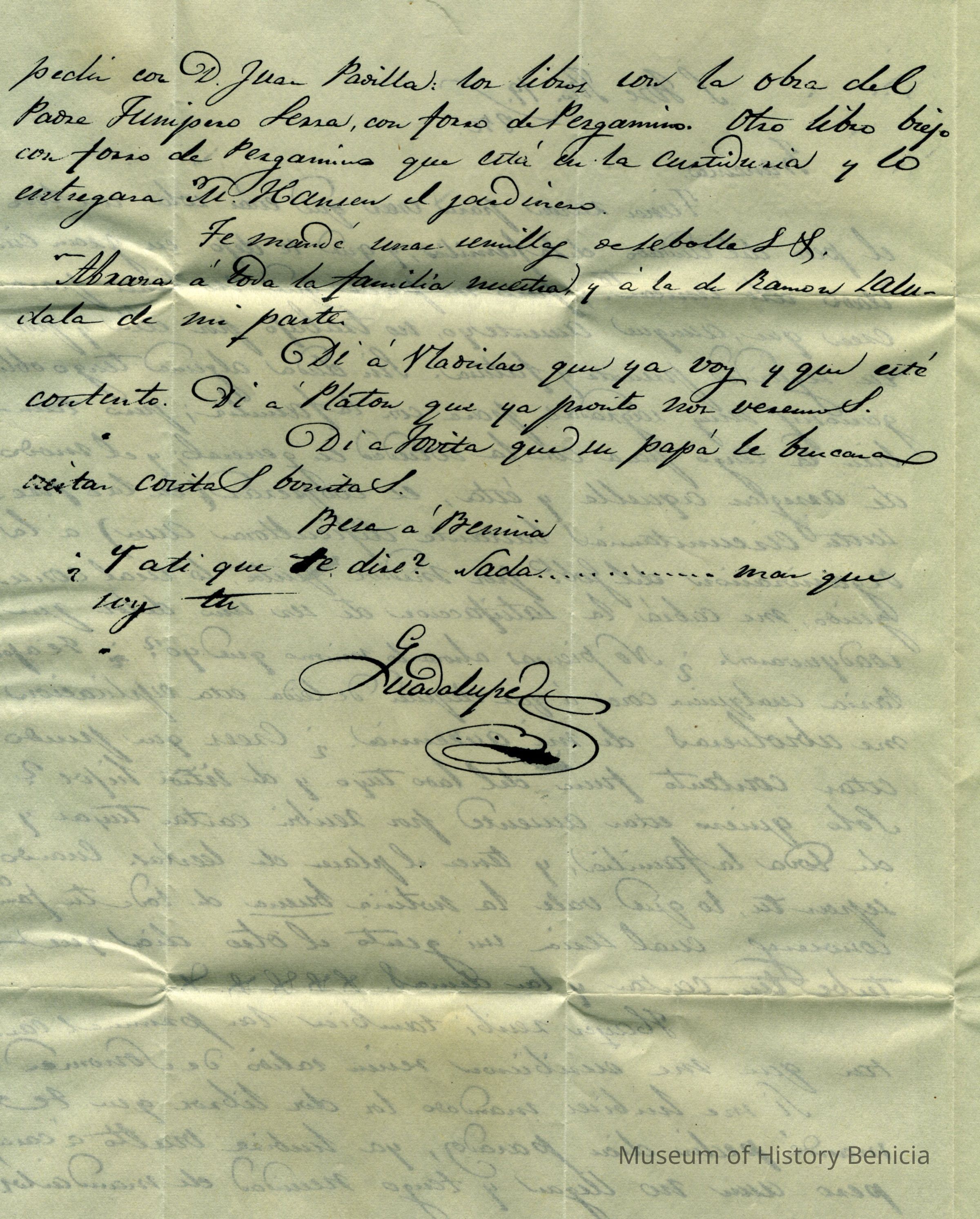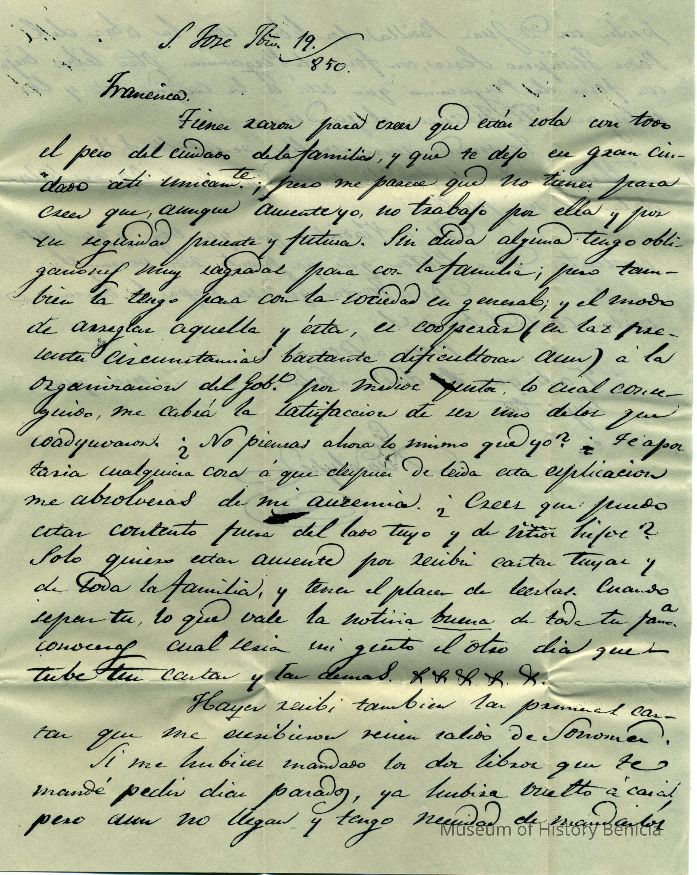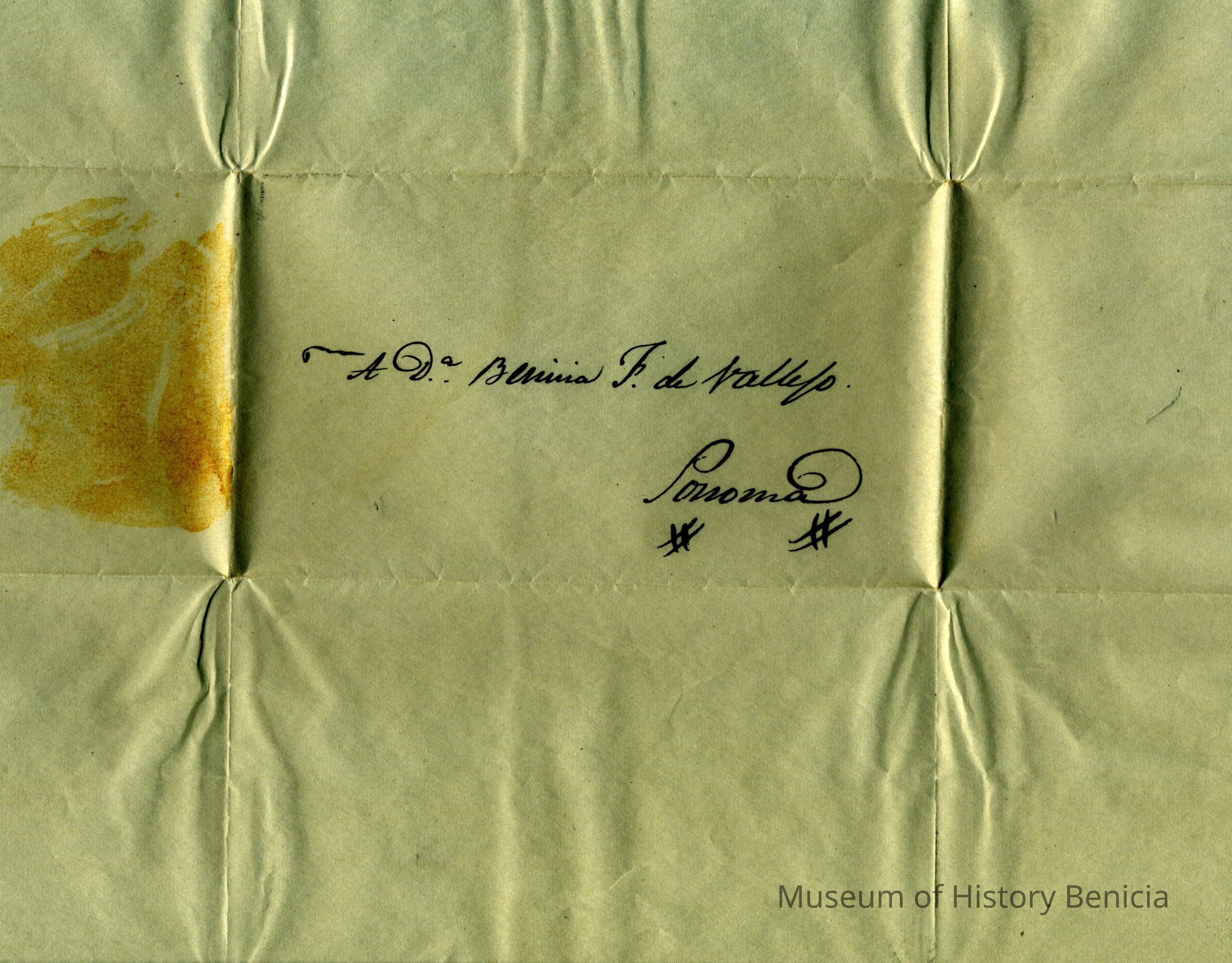 This is a copy of an 1850 letter written to Dona Benicia from General Vallejo in 1850. It is a copy received from the Native Sons of the Golden West Benicia chapter.
