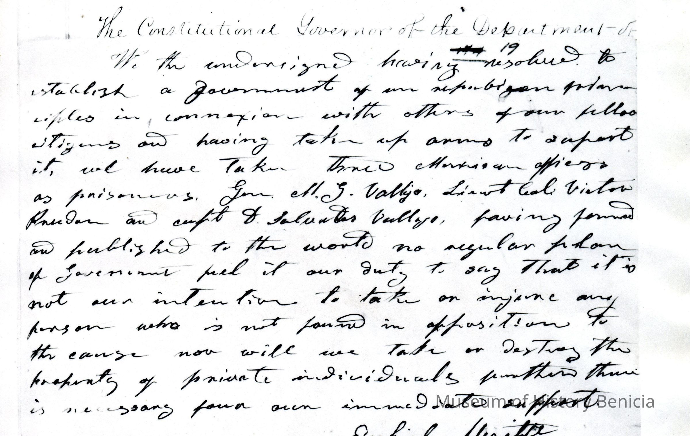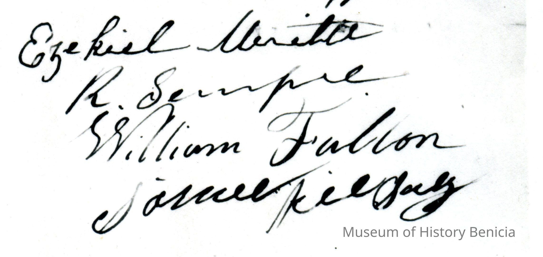 This is included in a collection of letters and documents for a forthcoming book published in 1950. Mr Wohlgemuth was contributing chapters to a four volume history of Free Masonry in California which was published in 1950. He was researching Dr. Robert Semple and events of that era. The volumes are available for reference in the Benicia Public Library.Collection