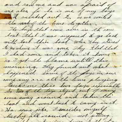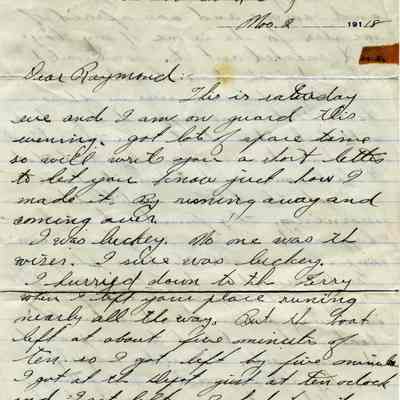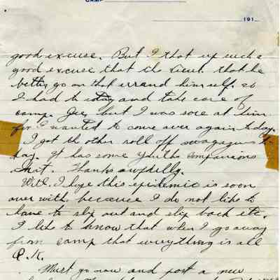 The letter was written November 2, 1918 and tells of how the soldier Rush was able to sneak out of camp and back without being discovered. At the end he says he hopes this "epidemic" is soon over... He must be talking about the 1918 flu epidemic.