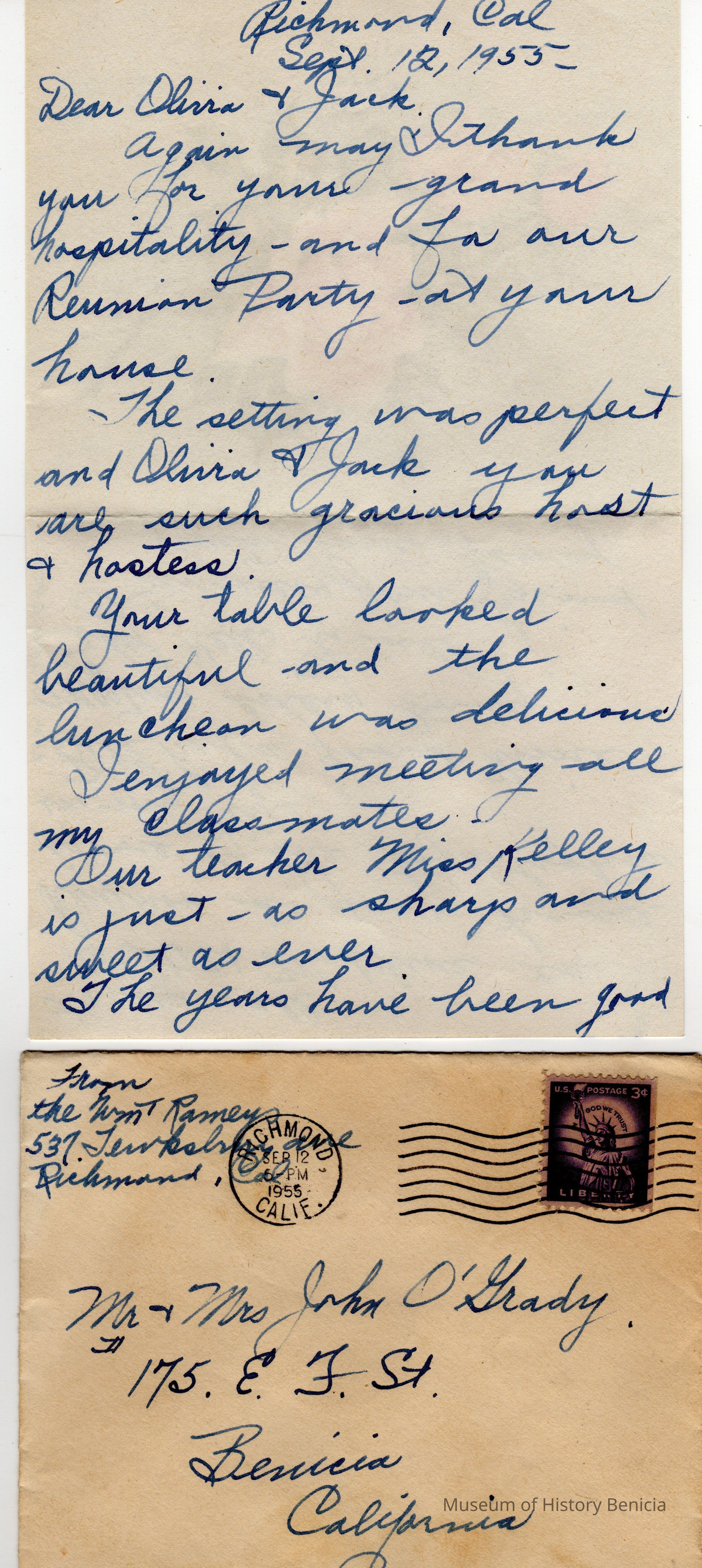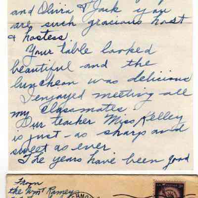 Letter from The William T Ramey's for the class reunion. Sent to Jack & Olivia O'Grady.