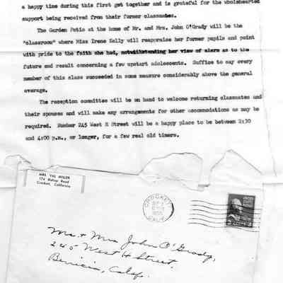 typed announcement for 1911 Grade School reunionCollection