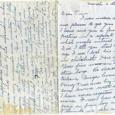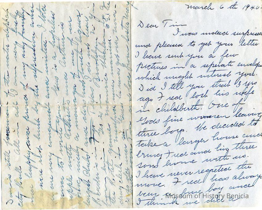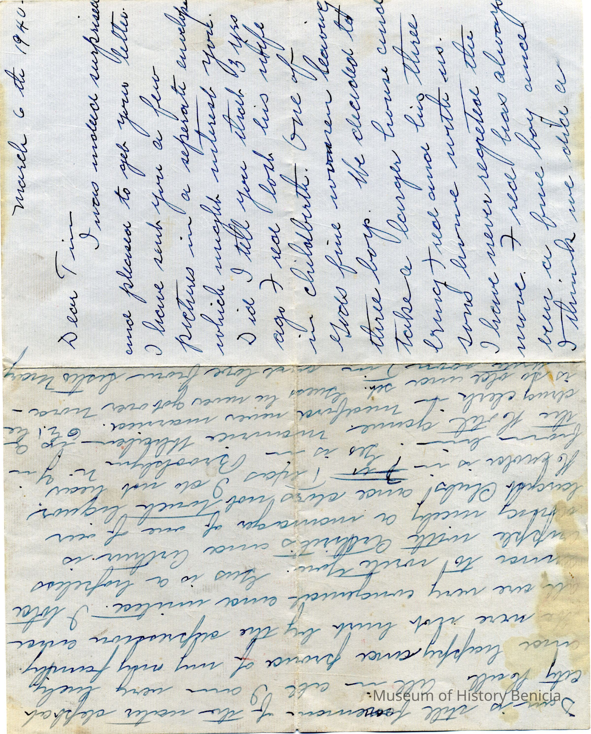 A letter to Tim from someone who sends love from Sister Mary. The letter is dated 03/06/1940.