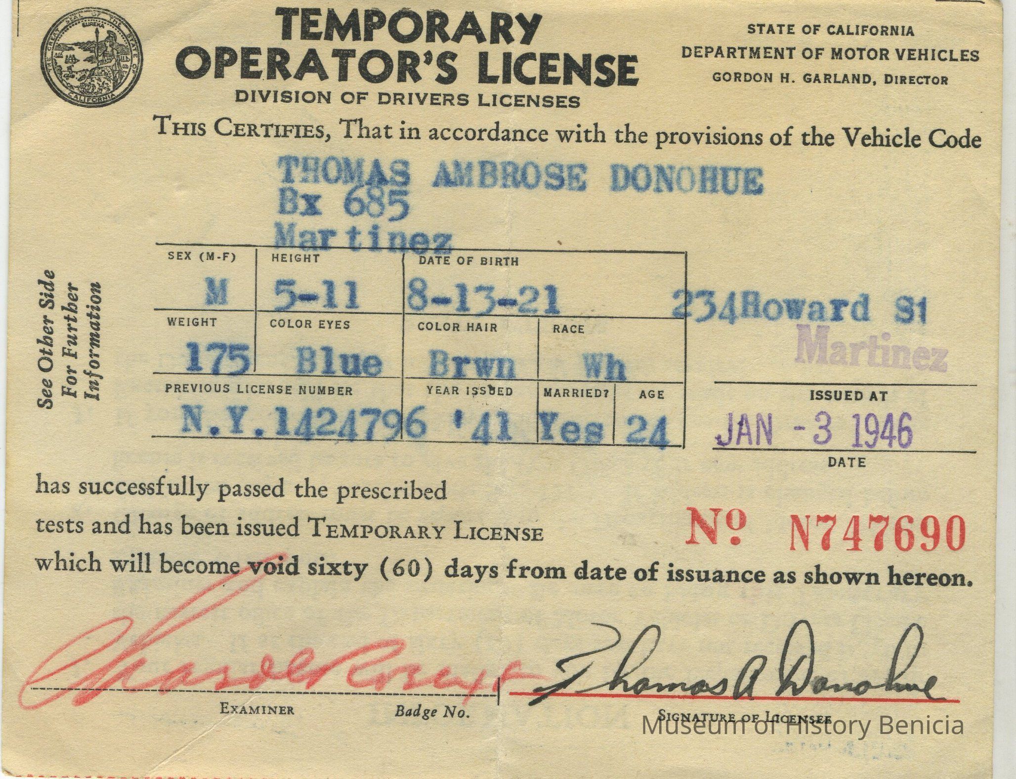 Temporary Operator's License - California D.M.V. for