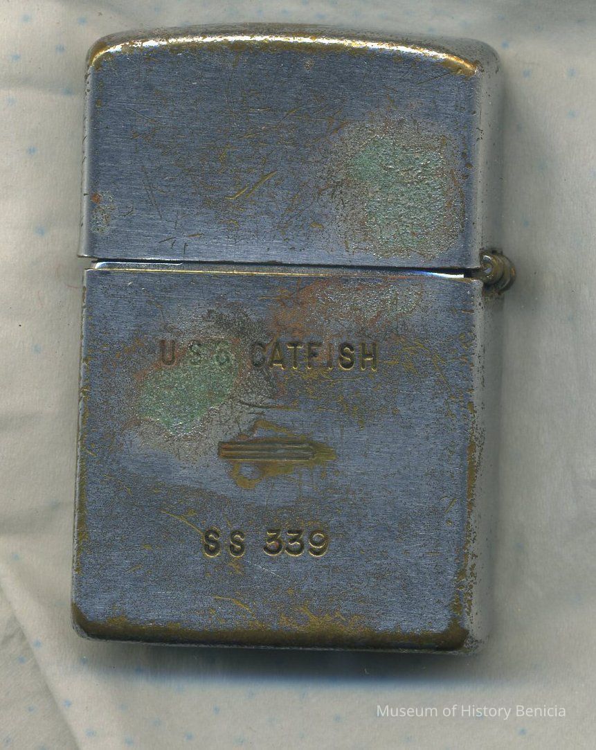 Lighter - flip open - Silver - "U.S. Catfish" "SS 339" etched on one side: on bottom: