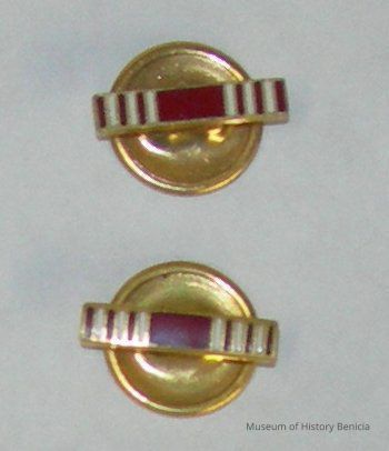 cuff links - design is Good Conduct Medal - red w/three white stripes on each side BHM2009.015.0046a and b appear to be unused