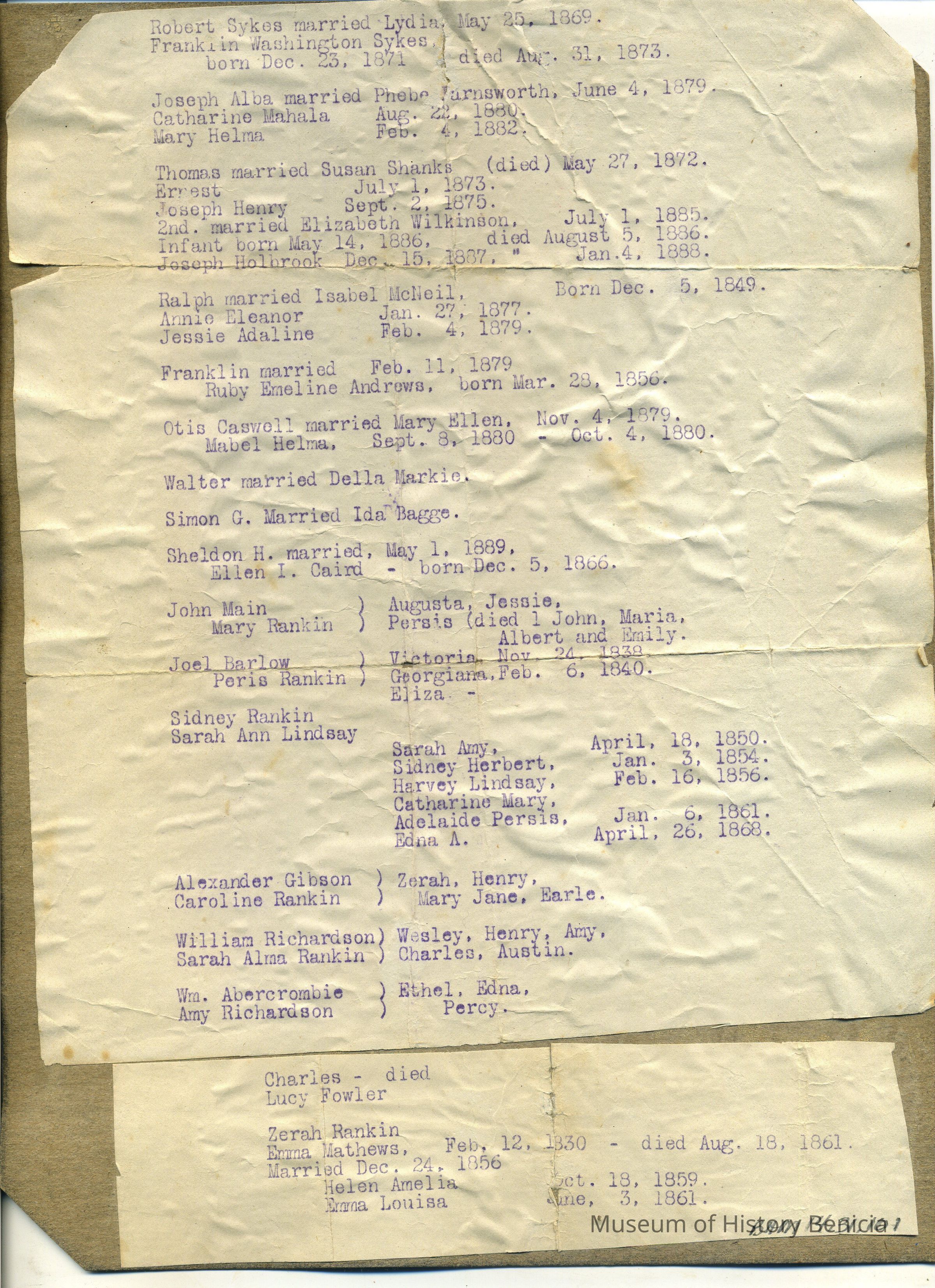 Mary Rankin > Persis (died 1 John, Maria, Albert, Emily
