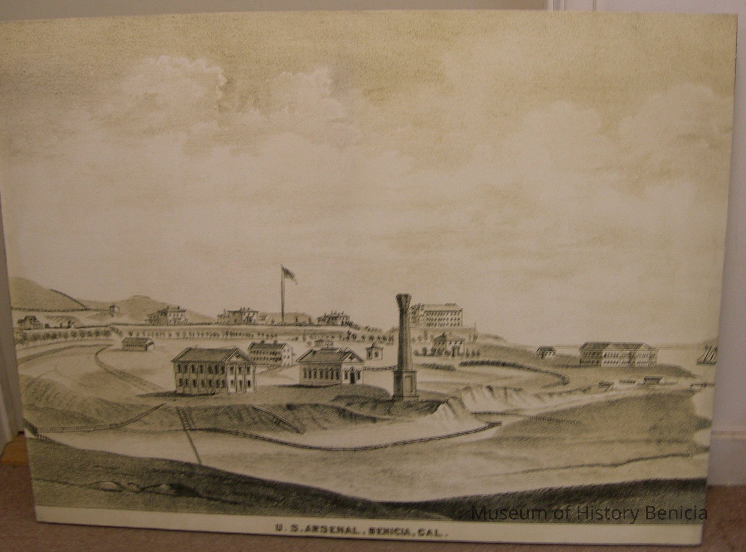 Lithograph reproduction on canvas on wood stretcher 30" x 40" x 1-1/2" U.S. Arsenal, Benicia, Cal.