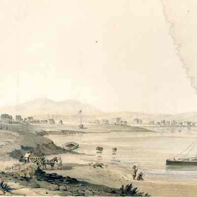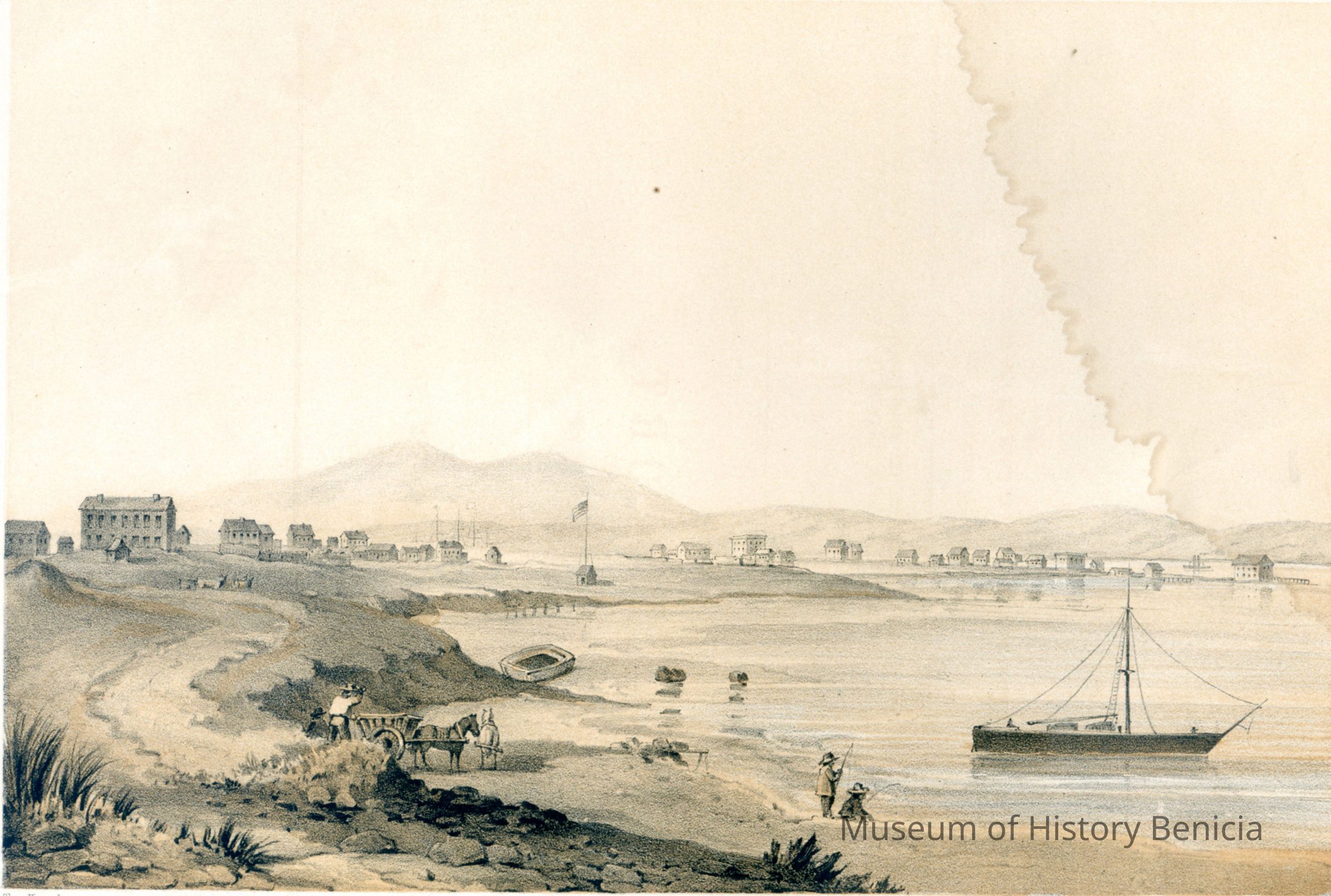 Lithograph - sepia toned "View of Benicia From the West" U.S.P.R.R. Exp. & Surveys. CAL Plate I Chs. Koppel T. Sinclair's lith. Phila