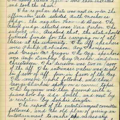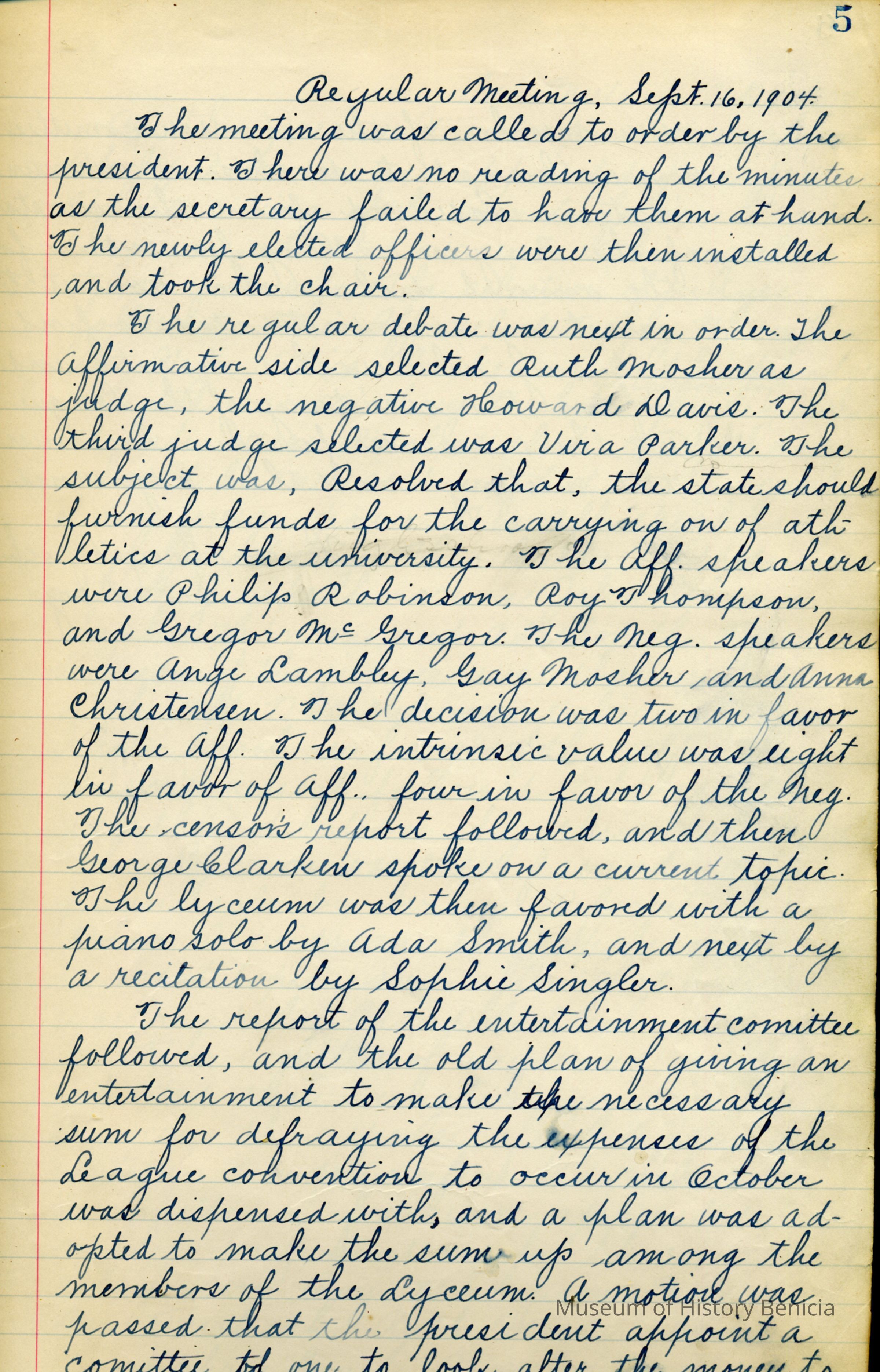 Bound Book of the minutes for 1904 - 1909 of the Lyceum Club at Benicia High School.