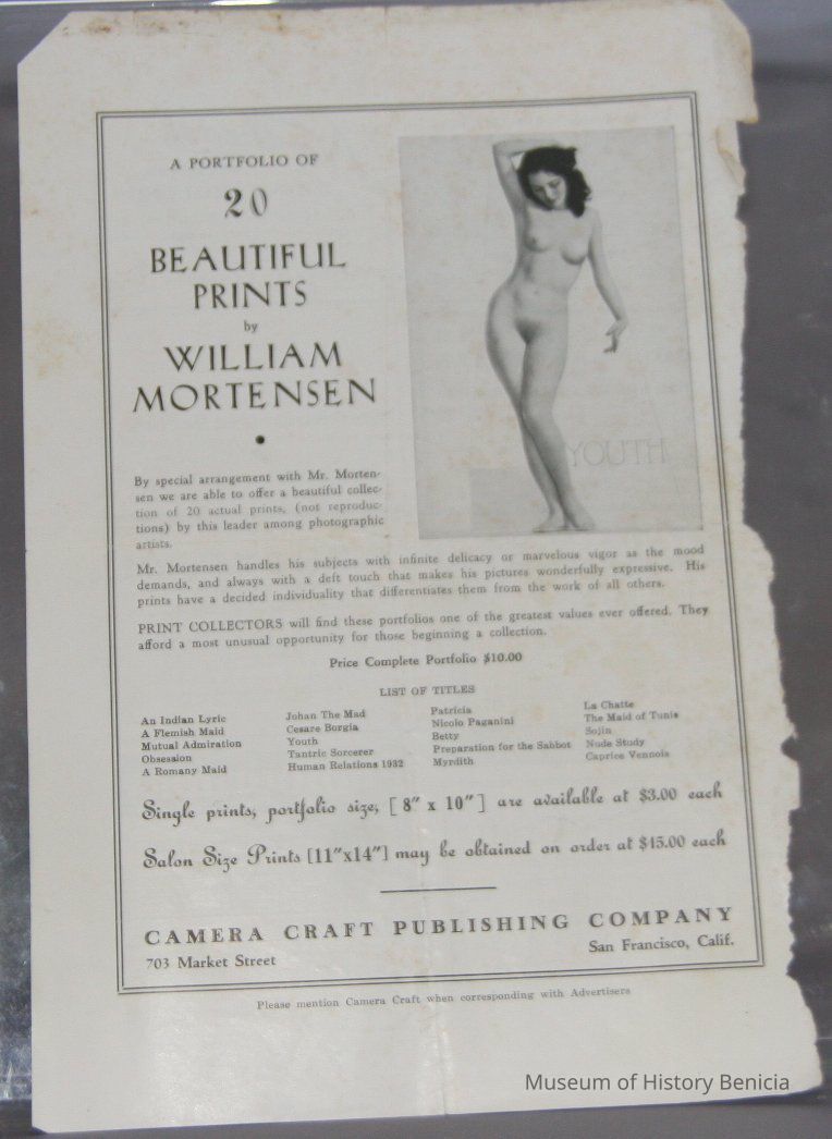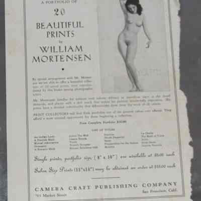 2 pages from "Camera Craft" magazine. Nude photos, ads, and part of article on mechanics of lenses. Probably from the 1930s.