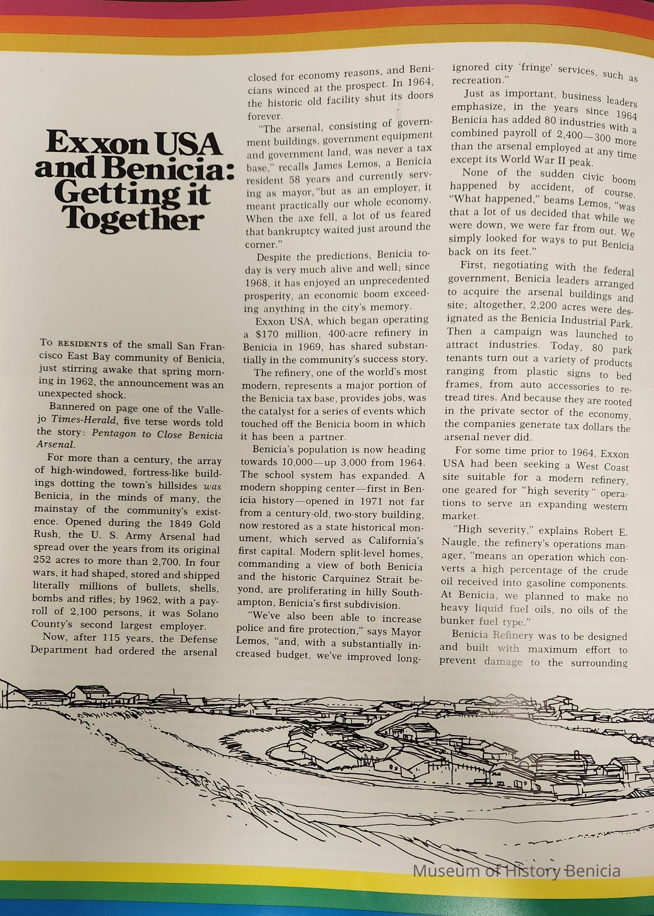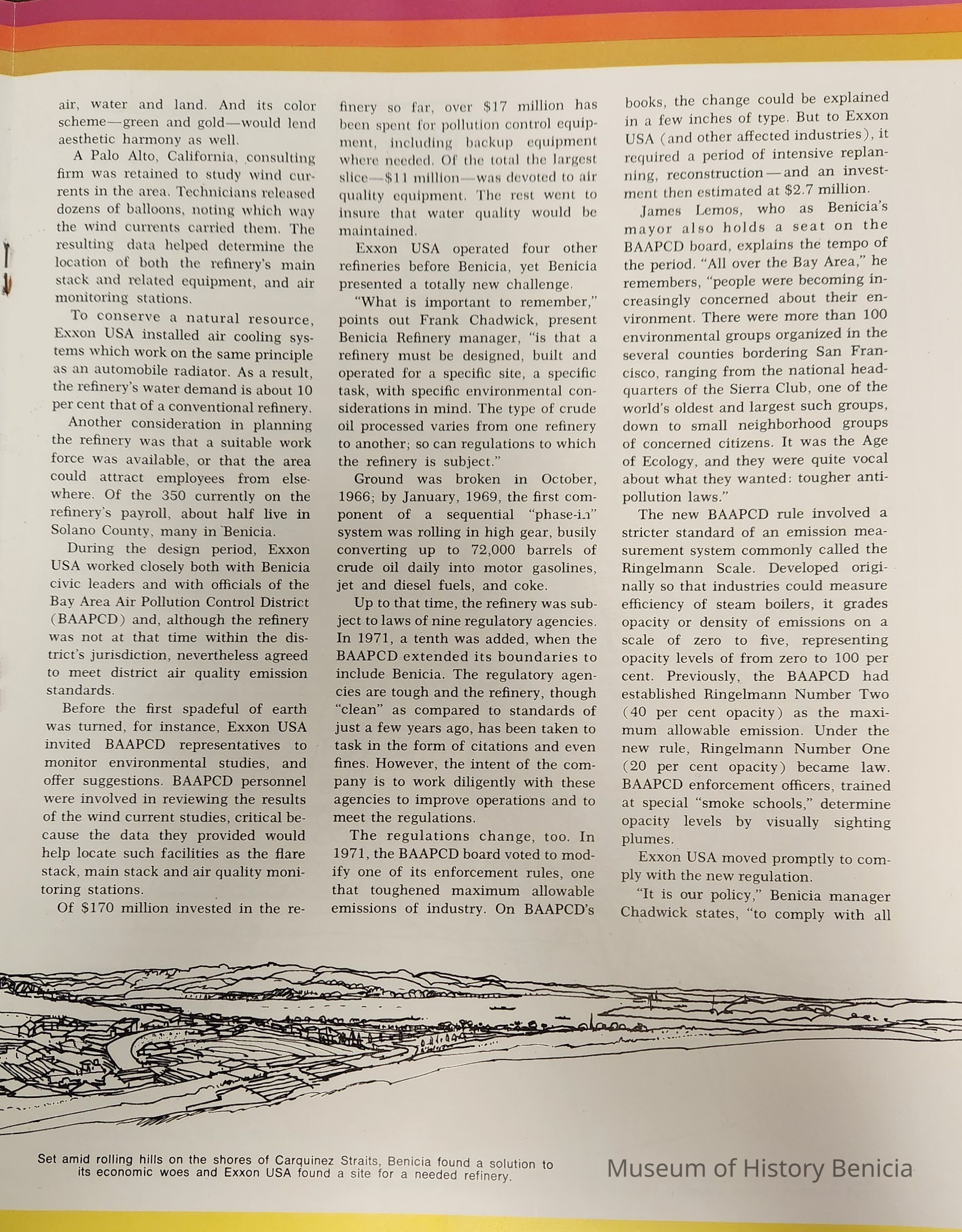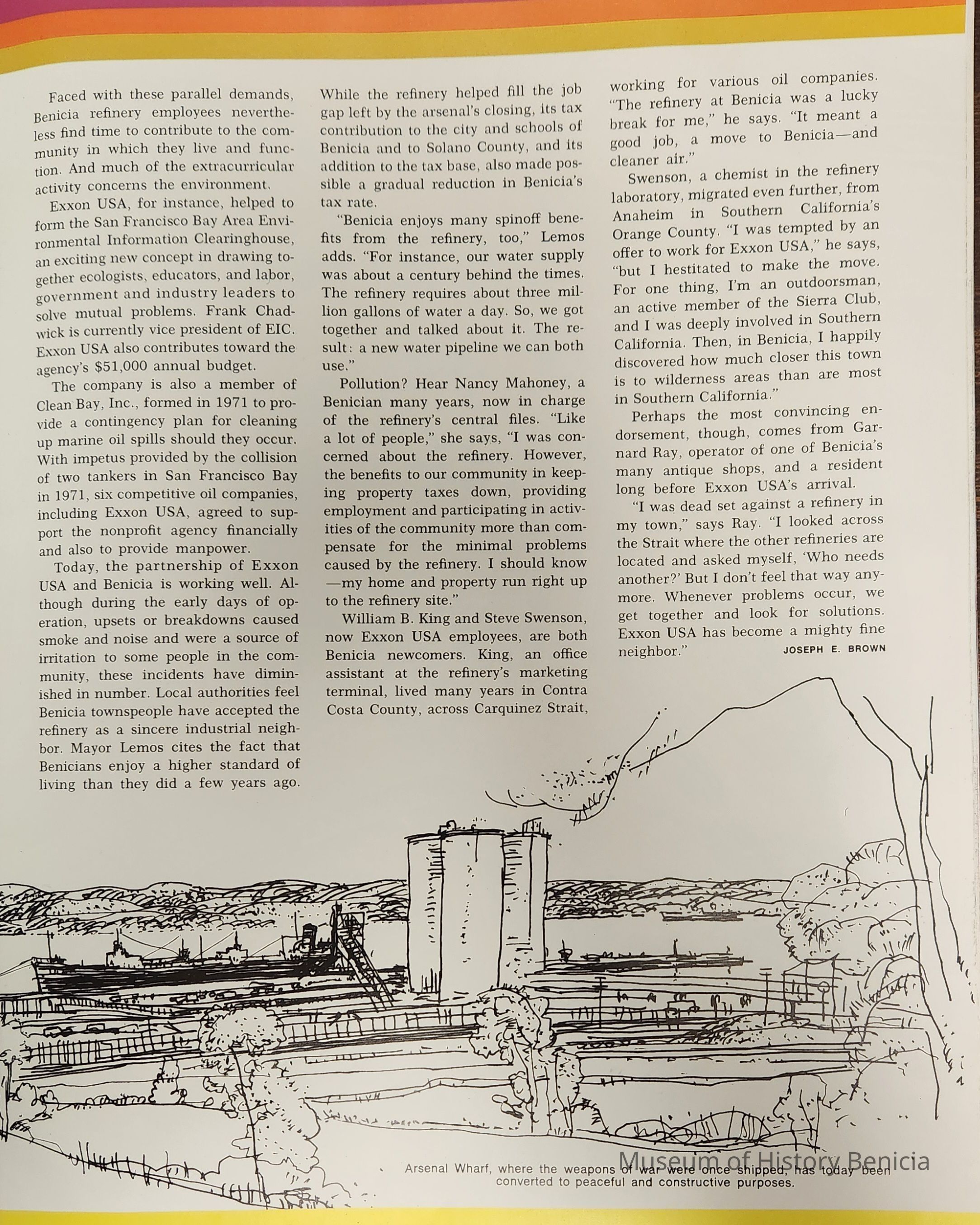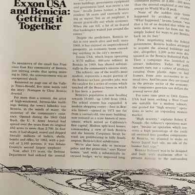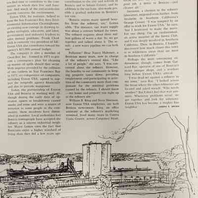 Table of Contents: The cover is a photo by Tracy Borland; page 2: A Baseline for Beaufort; page 8: Energy: A Tantalizing Subject; page 12: Oil in the Arizona Desert? Ridiculous!; page 16: Exxon USA and Benicia: Getting it Together; page 22: Cleanest Industrial Port in America (Corpus Christi, TX); page 28: Leffingwell: Prudhoe's Pioneer Scientist. For the most part the paper is slick with the cover being slightly heavier than the inside pages. There are 32 printed pages.Collection