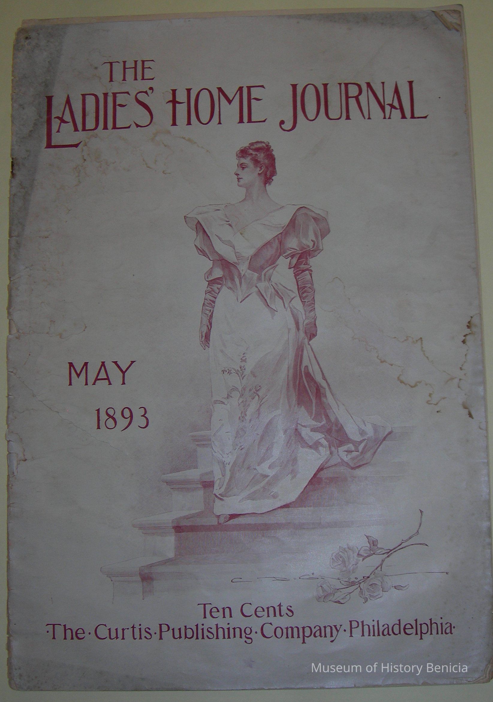 "The Ladies' Home Journal/ May 1893" 32 pgs. Cover shows woman in formal dress and gloves printed in purple ink.