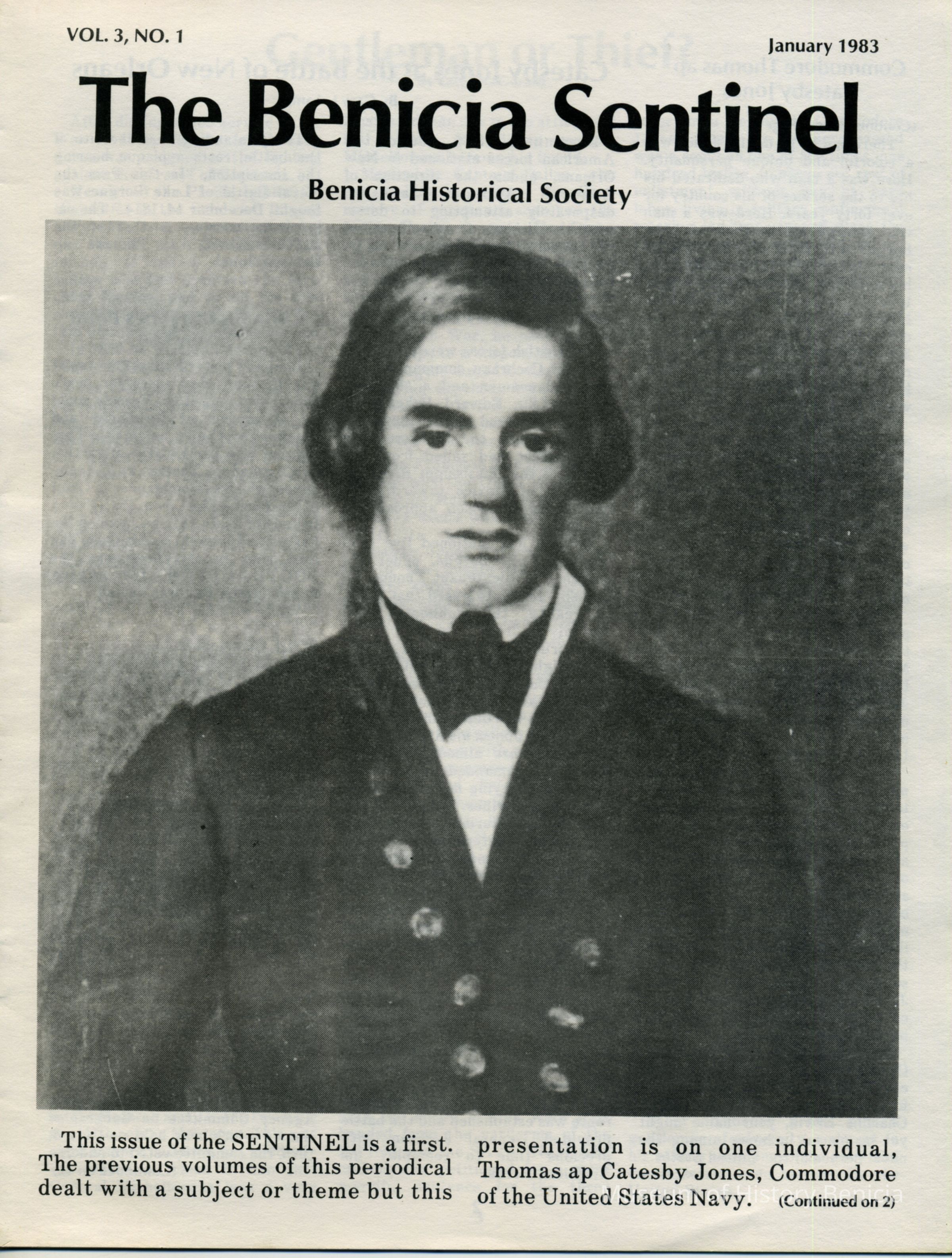 Copy of Benicia Historical Society "Benicia Sentinel" publication. Vol 3 No 1. January 1983