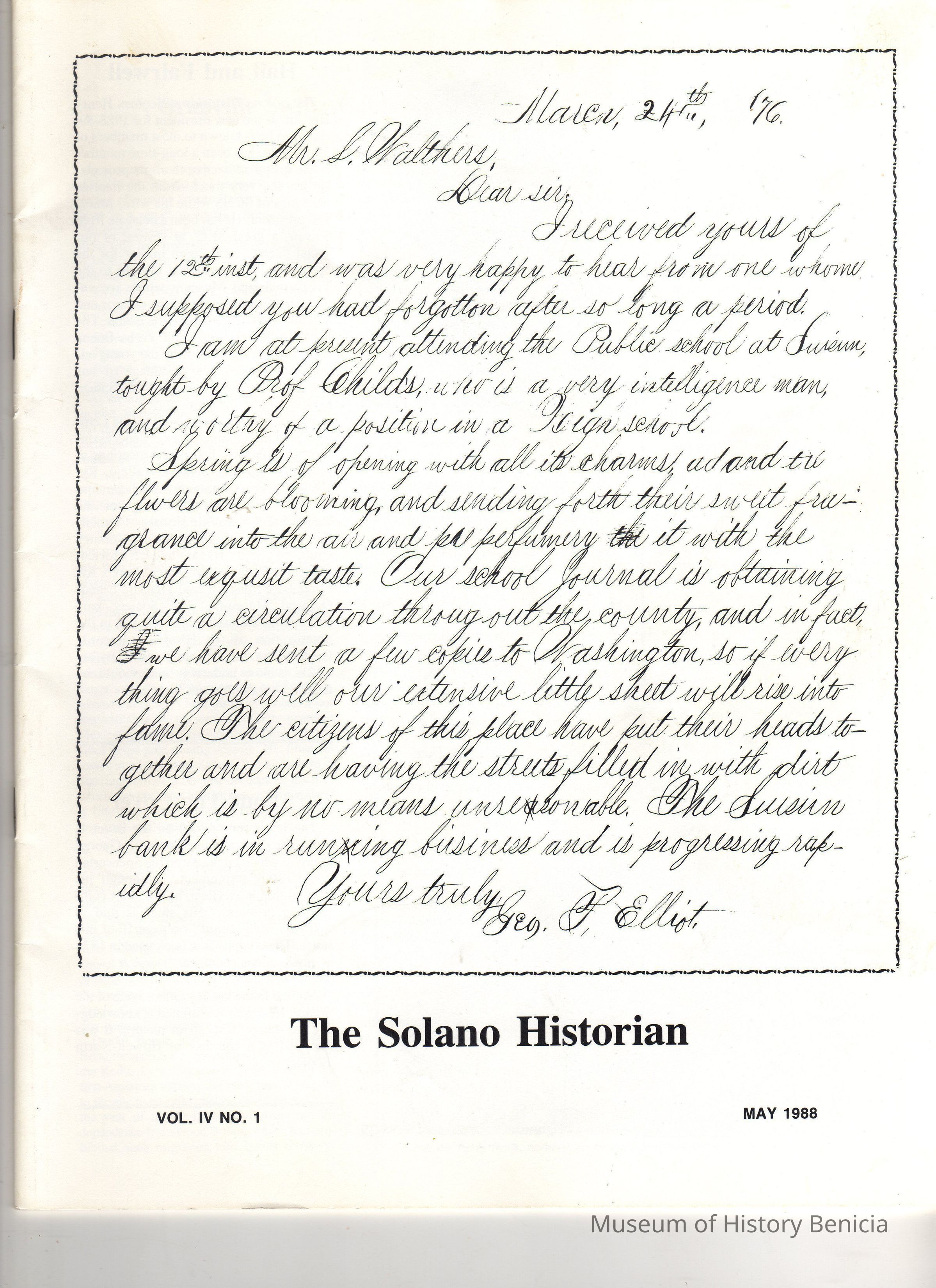 The Solano Historian Vol. IV No. 1 May 1988 28 pages