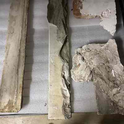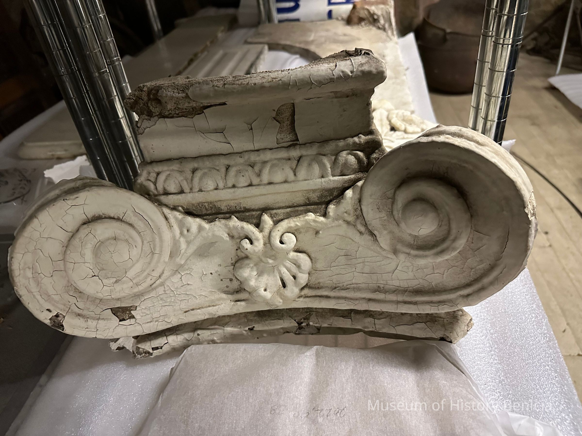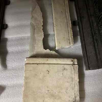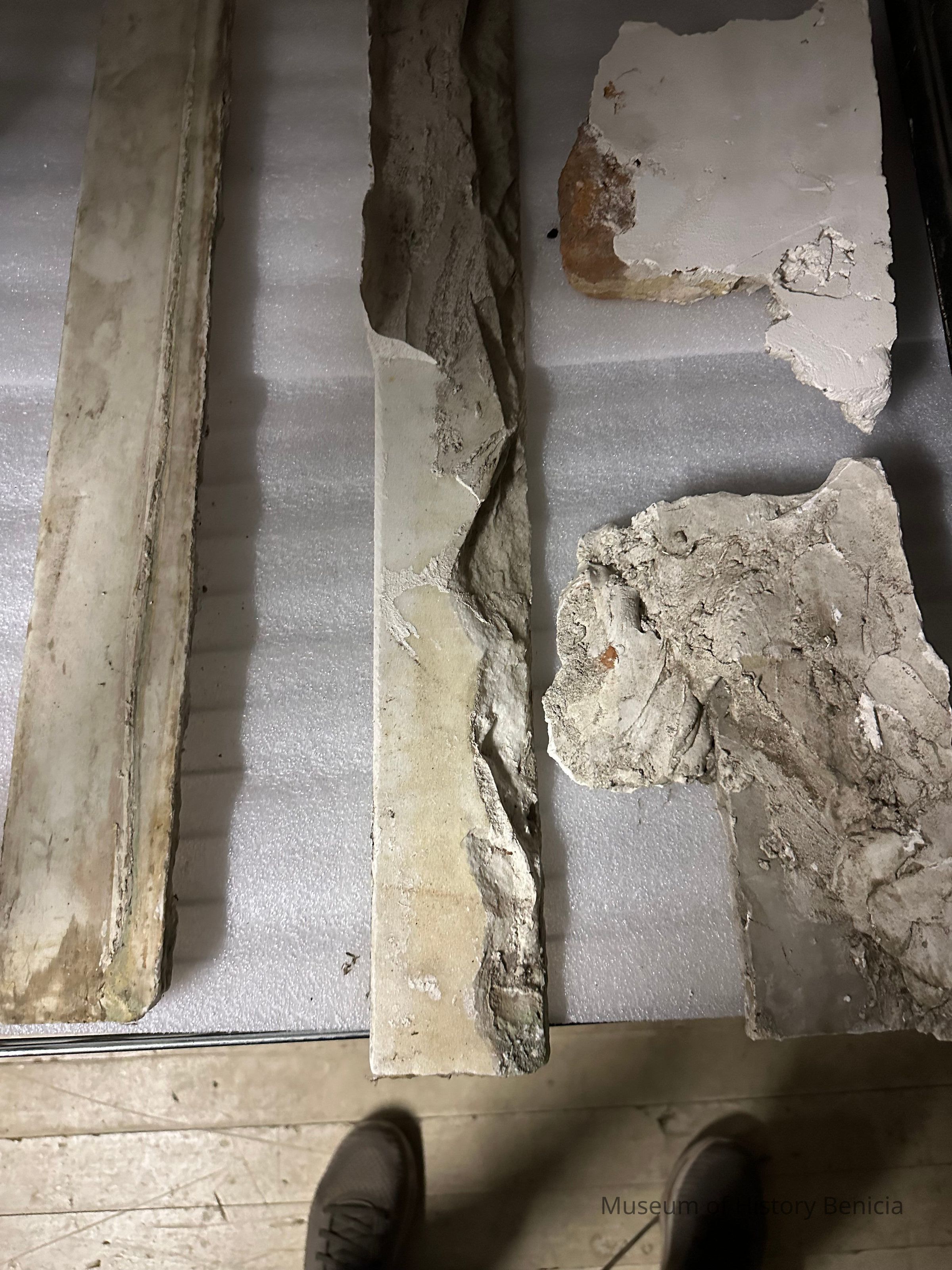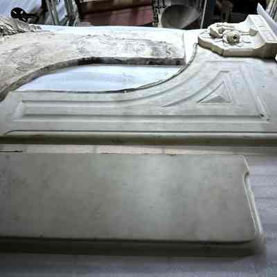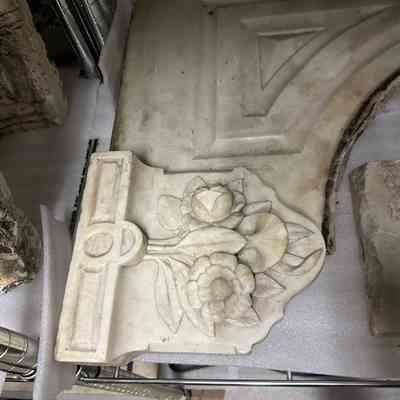 Marble fireplace mantle from 456 East K Street, Benicia. There are several pieces as the mantle was broken upon removal. Donated by Phil Brkich.