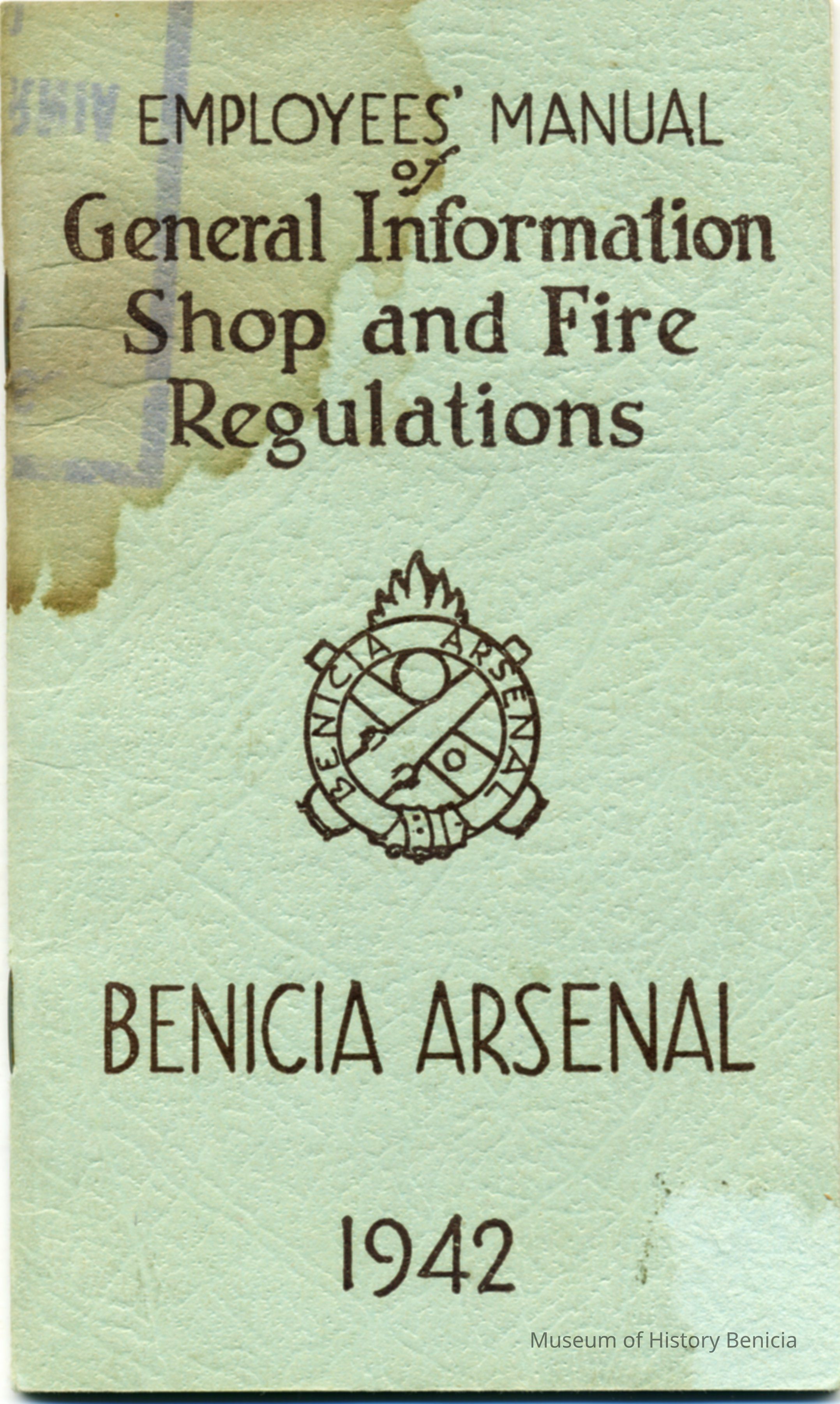 This is a manual of General Information on shop and fire regulations at the Benicia Arsenal in 1942.