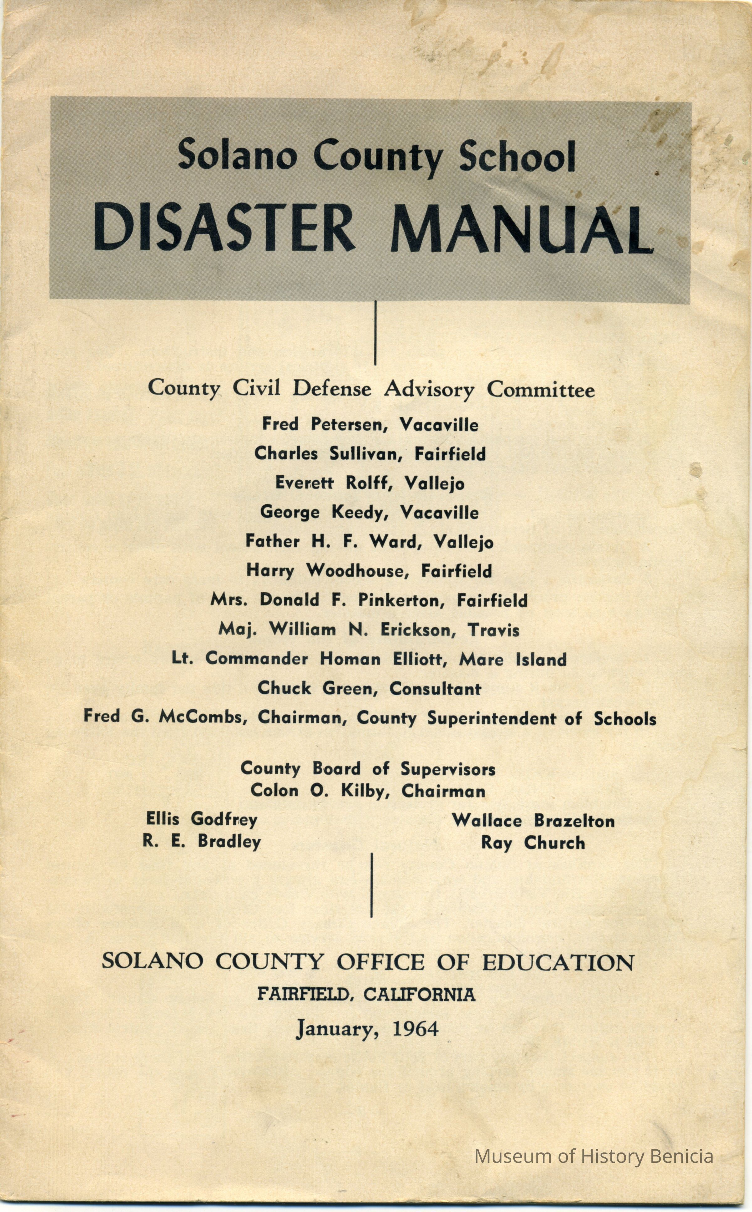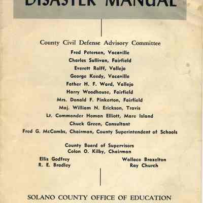 This is a manual for the Solano schools about what to do in a disaster. It is dated 01/1964.