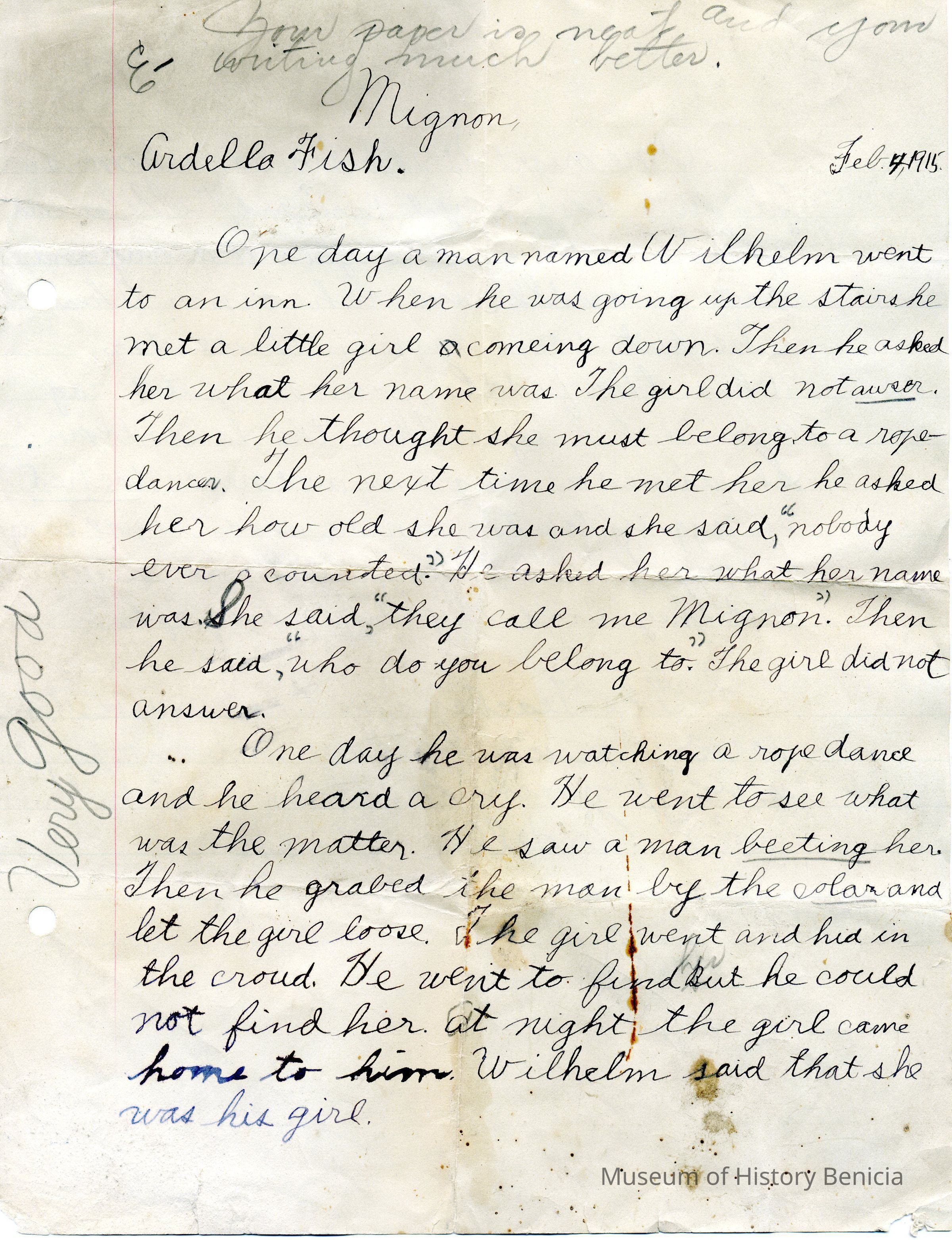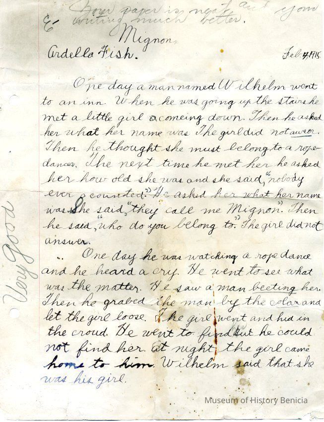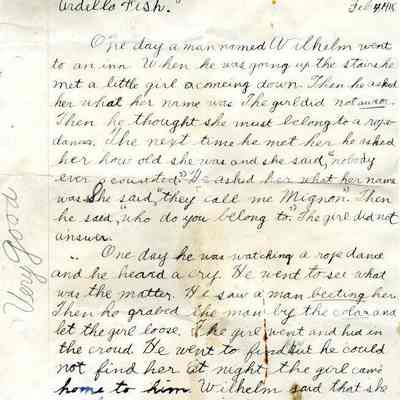 A story written by Ardella Fish about a "rope dancer" little girl named Mignon and a man named Wilhelm. The story involves a man beating the girl who is saved by Wilhelm.Collection