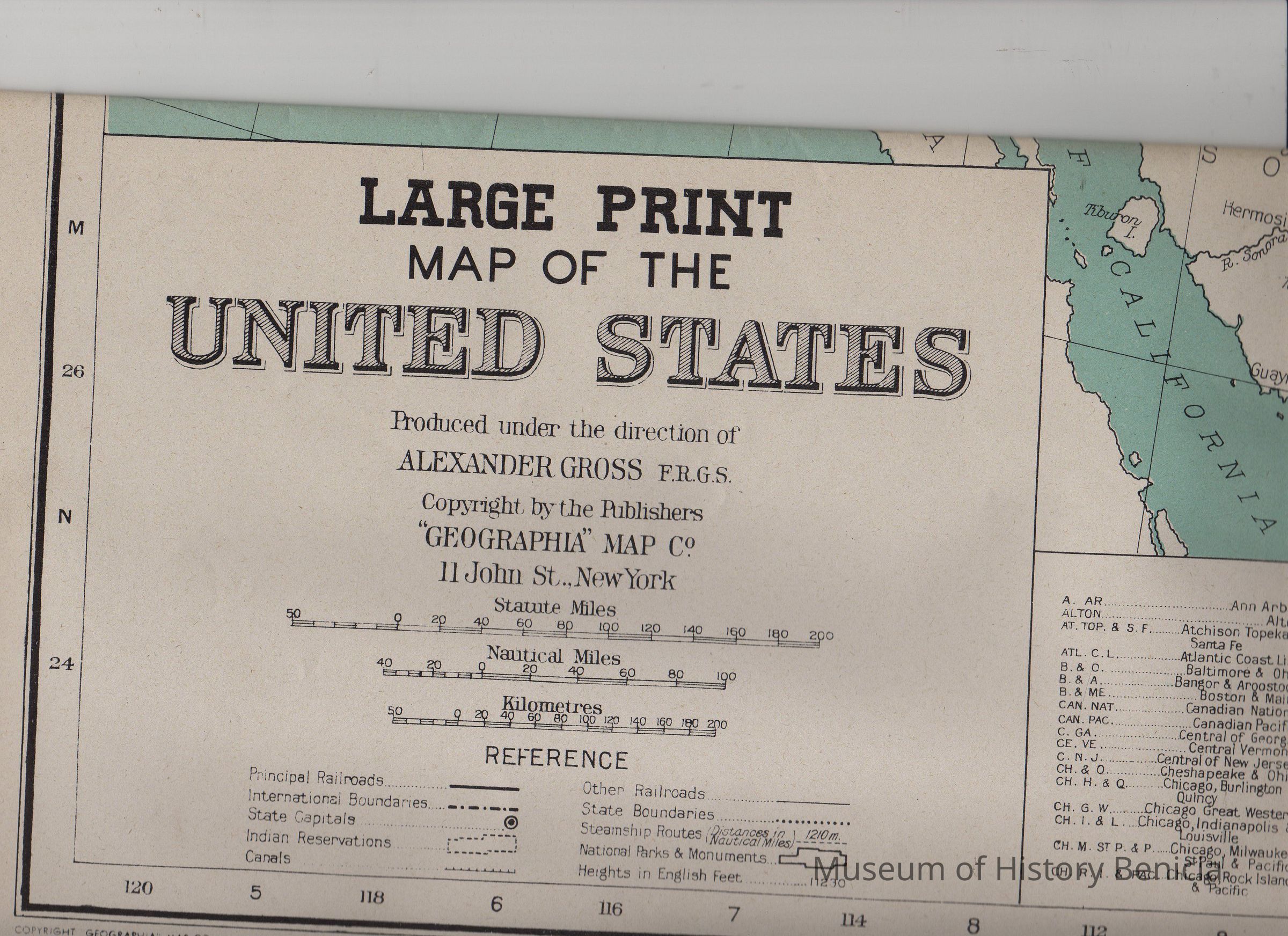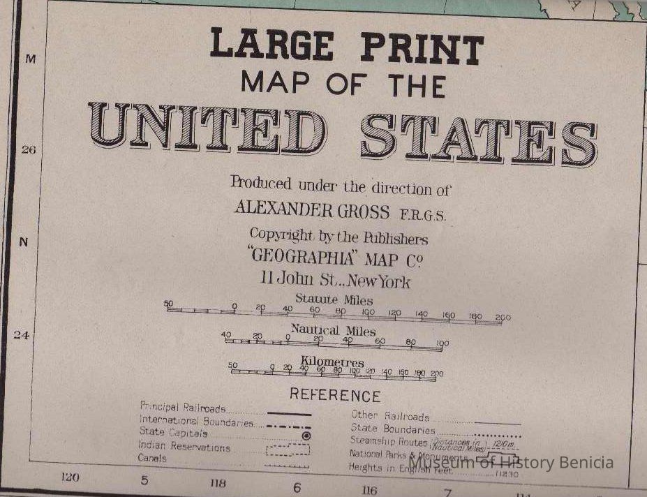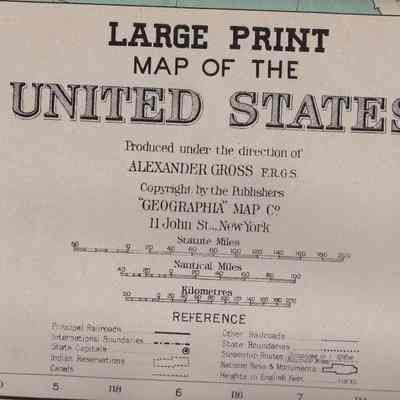 "LARGE PRINT MAP OF THE UNITED STATES..." Produced under the Direction of Alexander Gross, FRGS, Copyright by the publishers: "Geographia" Map Co. 145 West 57th St. New York 19, NY." One of 4 in envelope printed "Treasure Set of 4 Giant War maps...covering all battle fronts..."Collection