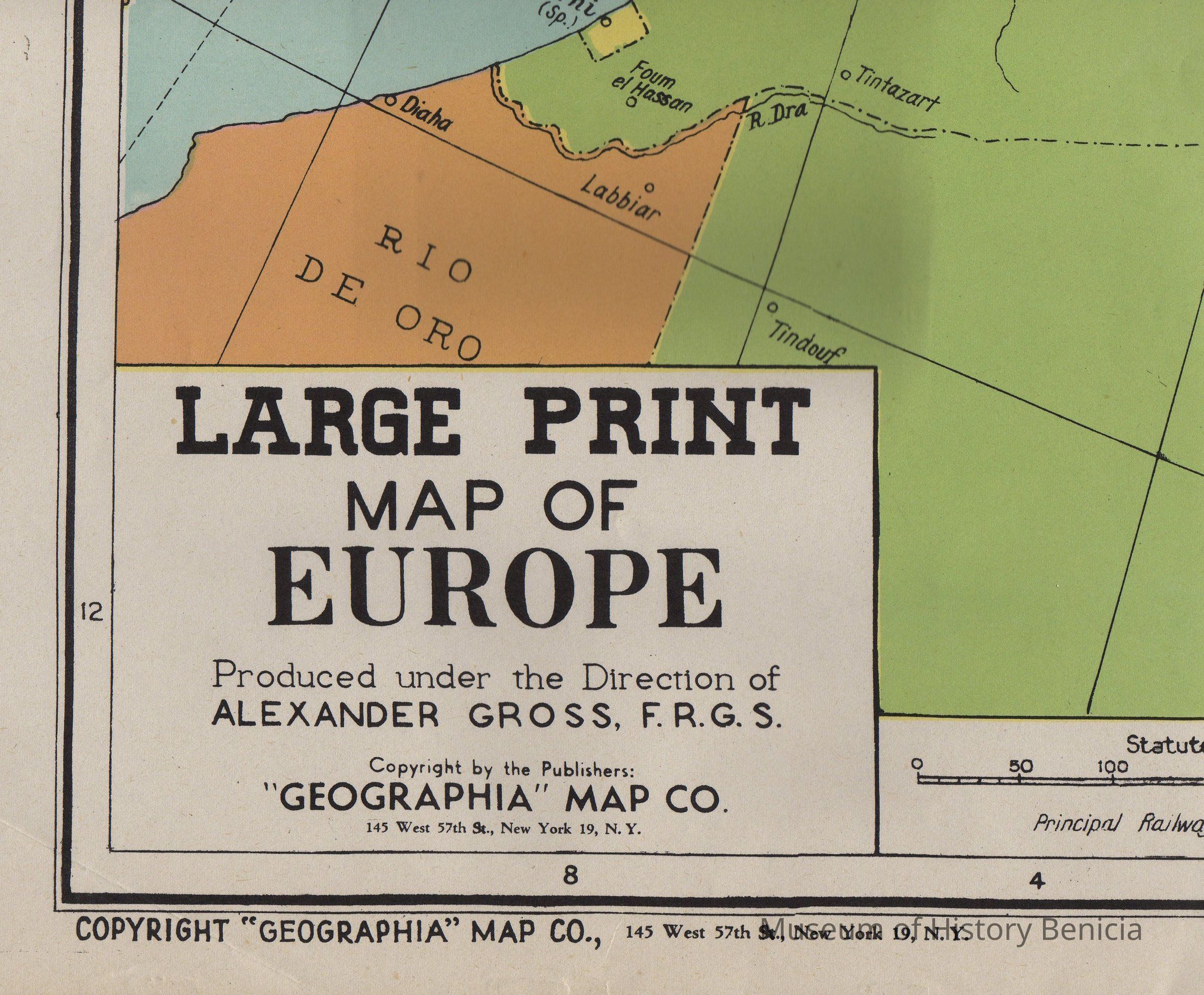"LARGE PRINT MAP OF EUROPE..." Produced under the Direction of Alexander Gross, FRGS, Copyright by the publishers: "Geographia" Map Co. 145 West 57th St. New York 19, NY." One of 4 in envelope printed "Treasure Set of 4 Giant War maps...covering all battle fronts..."Collection