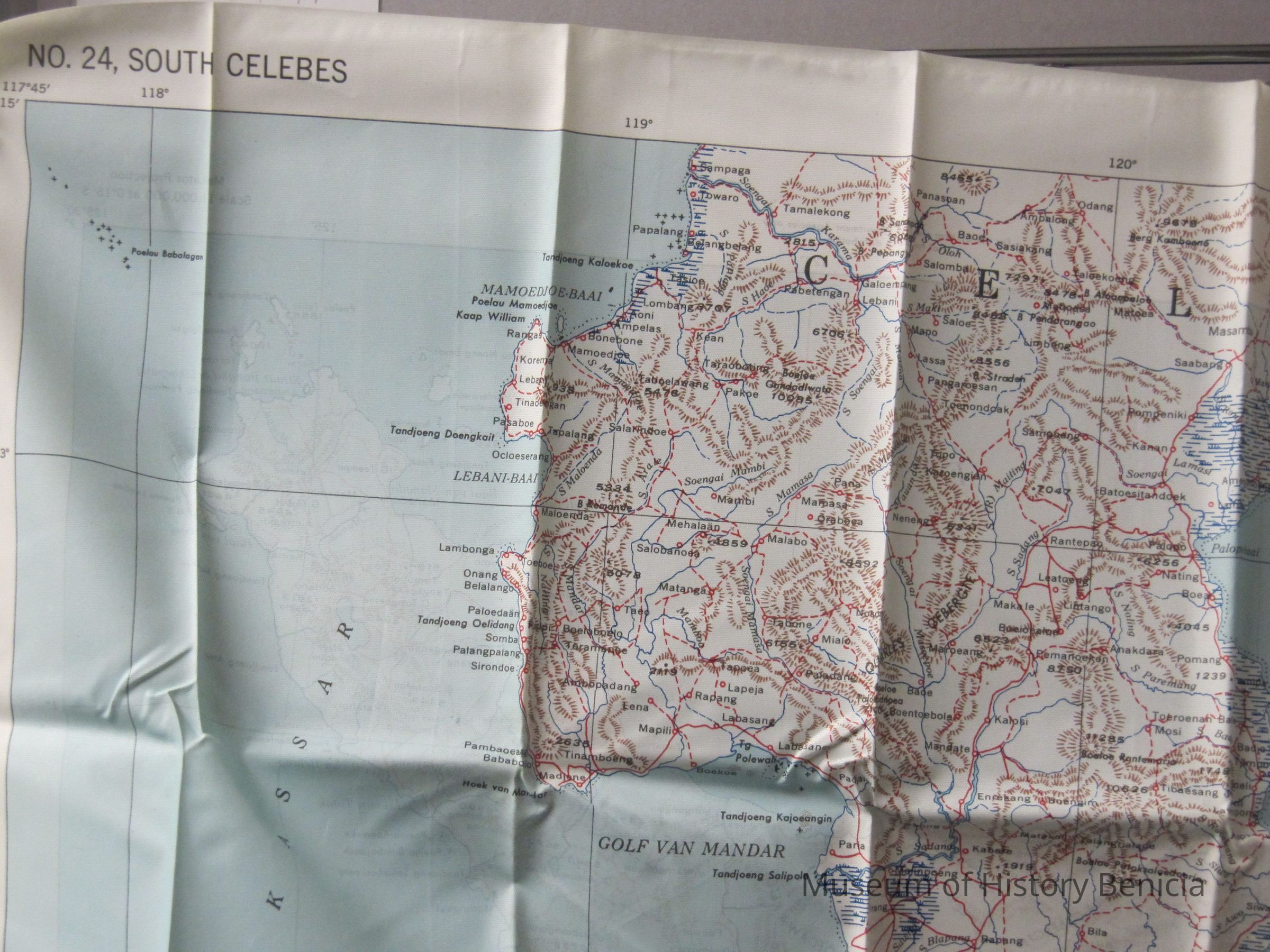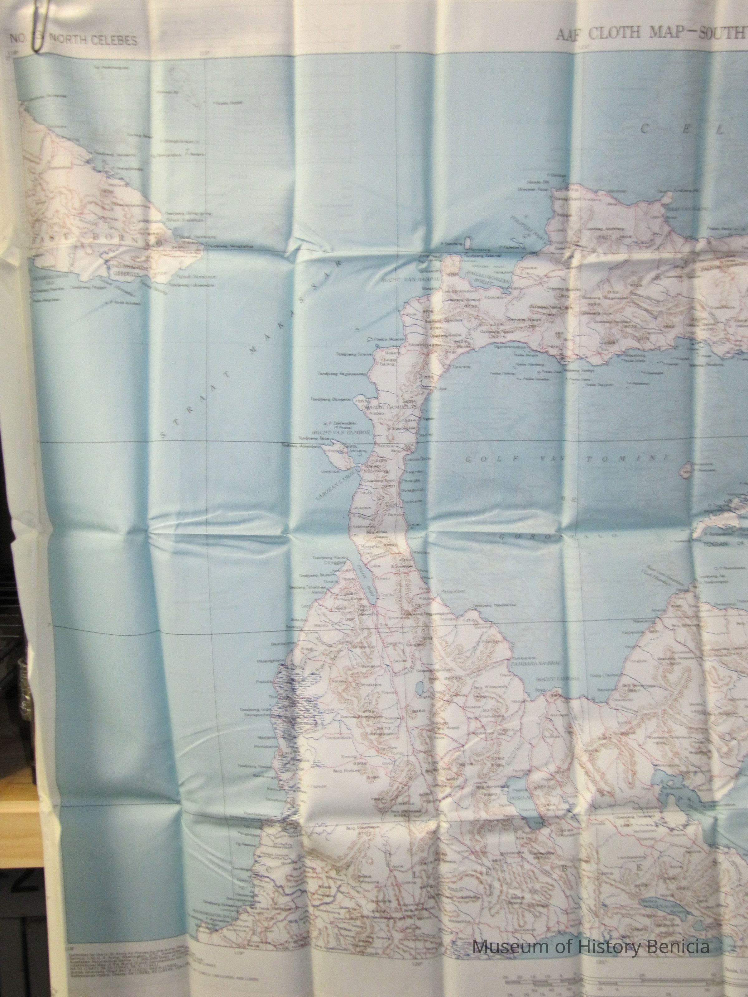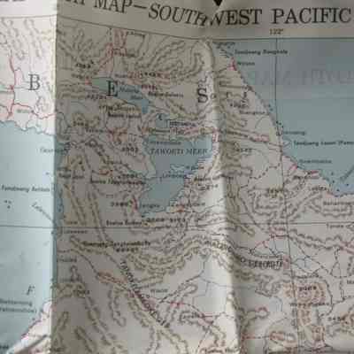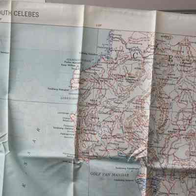 This is a map of the South and North Celebes region of the Pacific. It is map #24 on one side and #23 on the other in the series of maps produced for the Army Air Force during World War II. It is 36" x 26.5" but folds down to a size that can fit in a pocket.