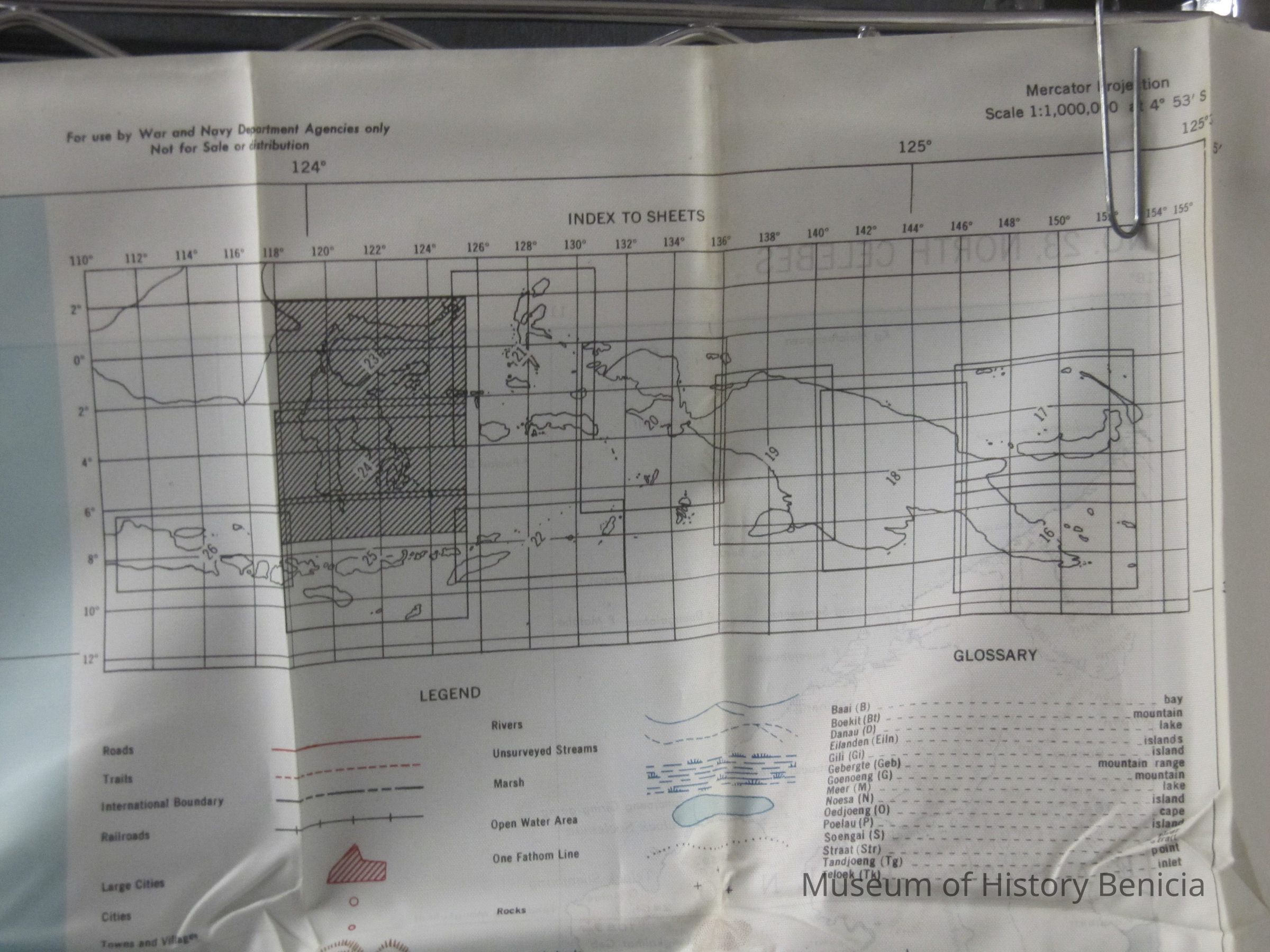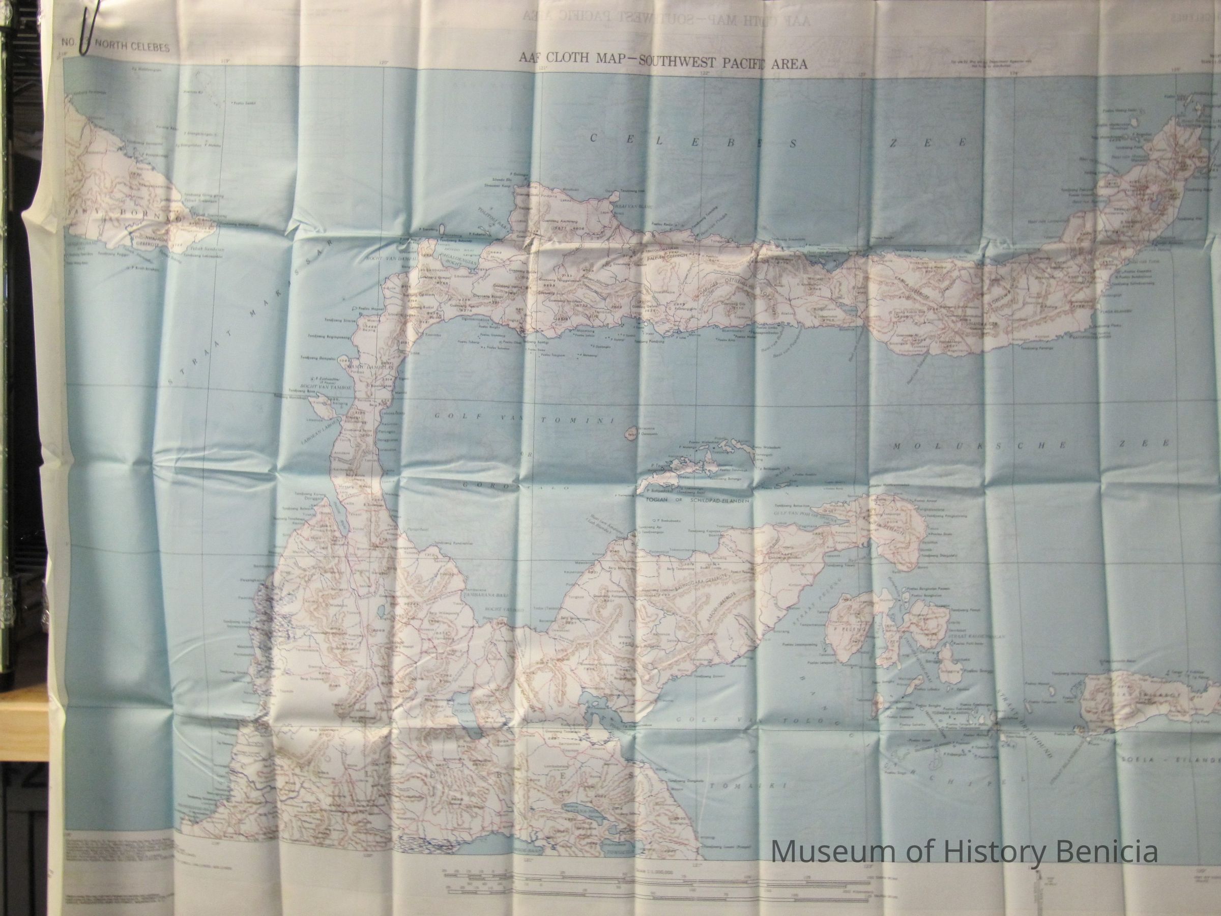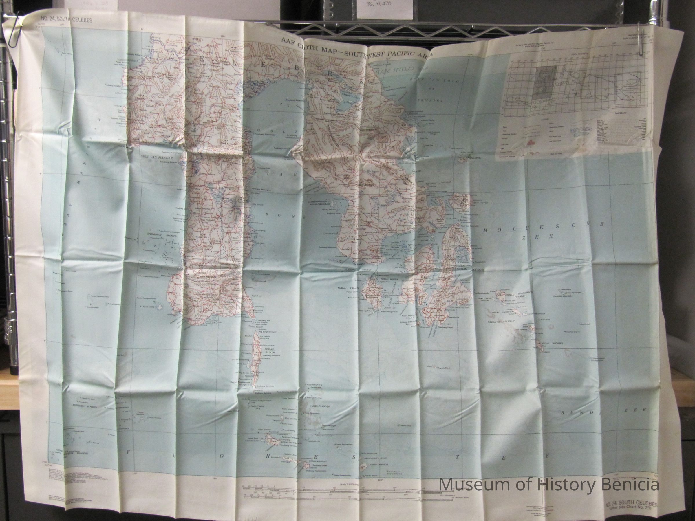 This is a map of the South and North Celebes region of the Pacific. It is map #24 on one side and #23 on the other in the series of maps produced for the Army Air Force during World War II. It is 36" x 26.5" but folds down to a size that can fit in a pocket.