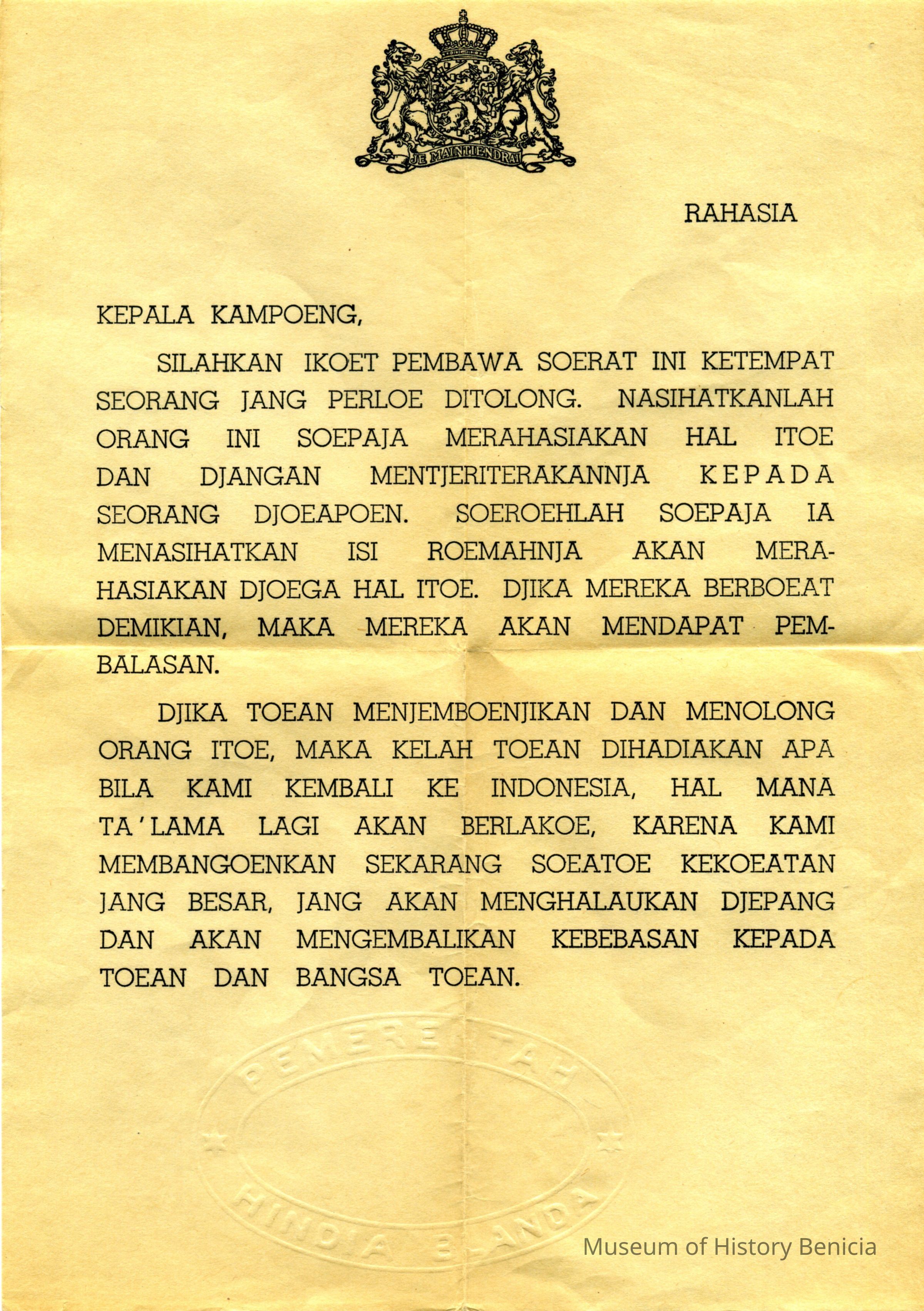 It also came with a piece of paper with the Netherlands Royal seal at the top. It appears to be written in a language from Indonesia. Not sure of the purpose of this paper.