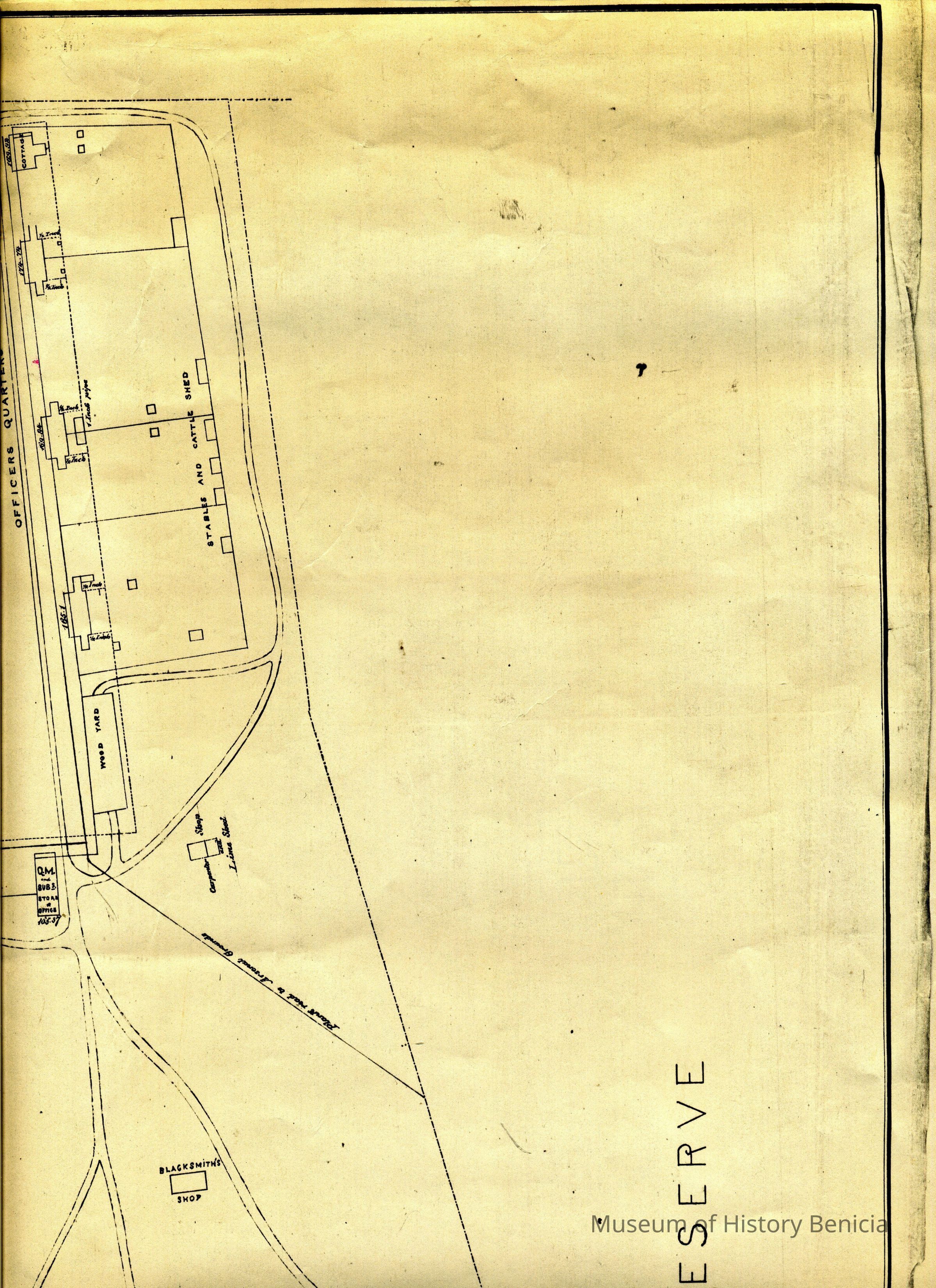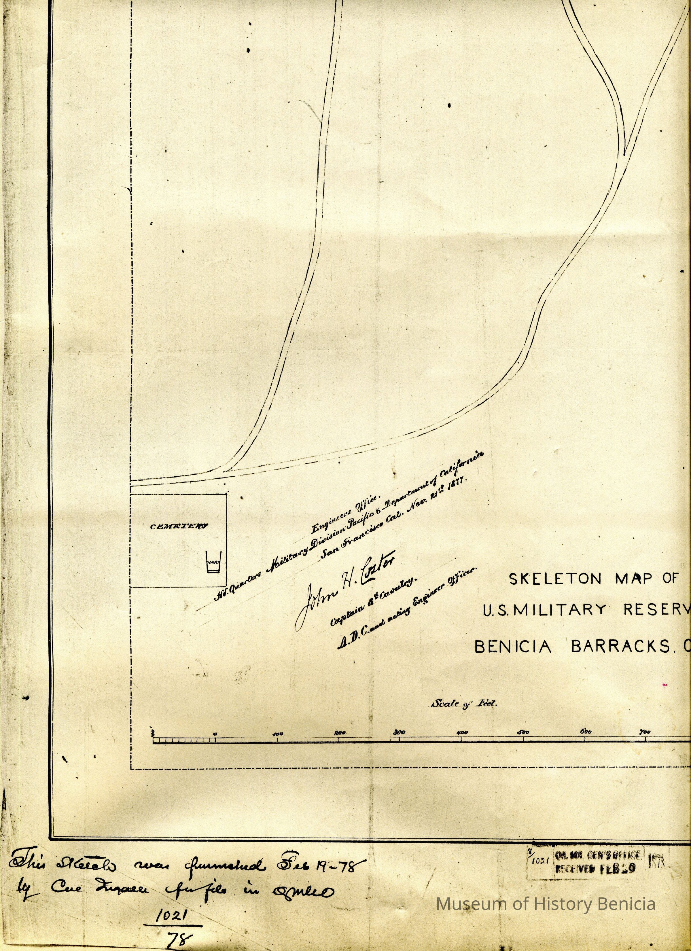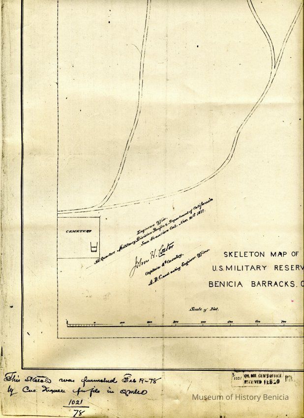 Skeleton Map of U.S. Military Reserve Benicia Barracks. CA. Furnished Feb. 19, 1878. It is a copy from The National Archives (#4)