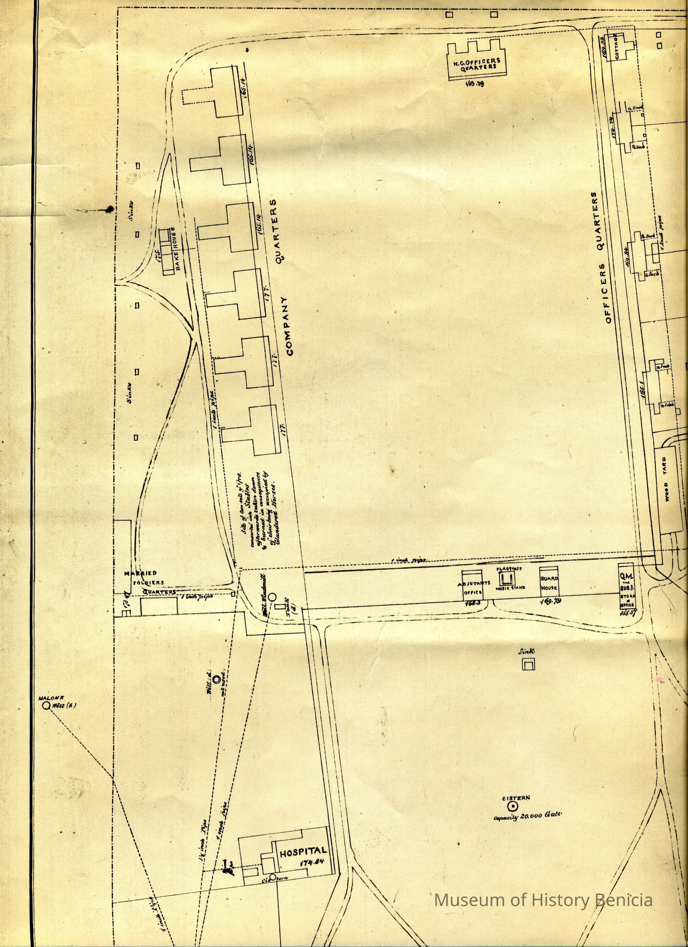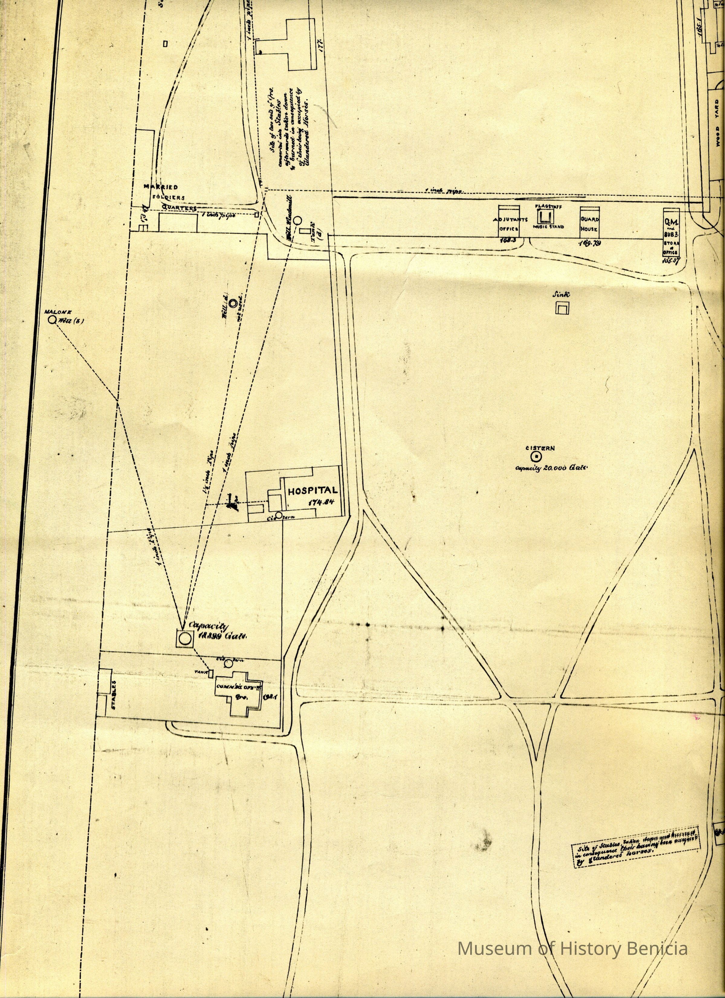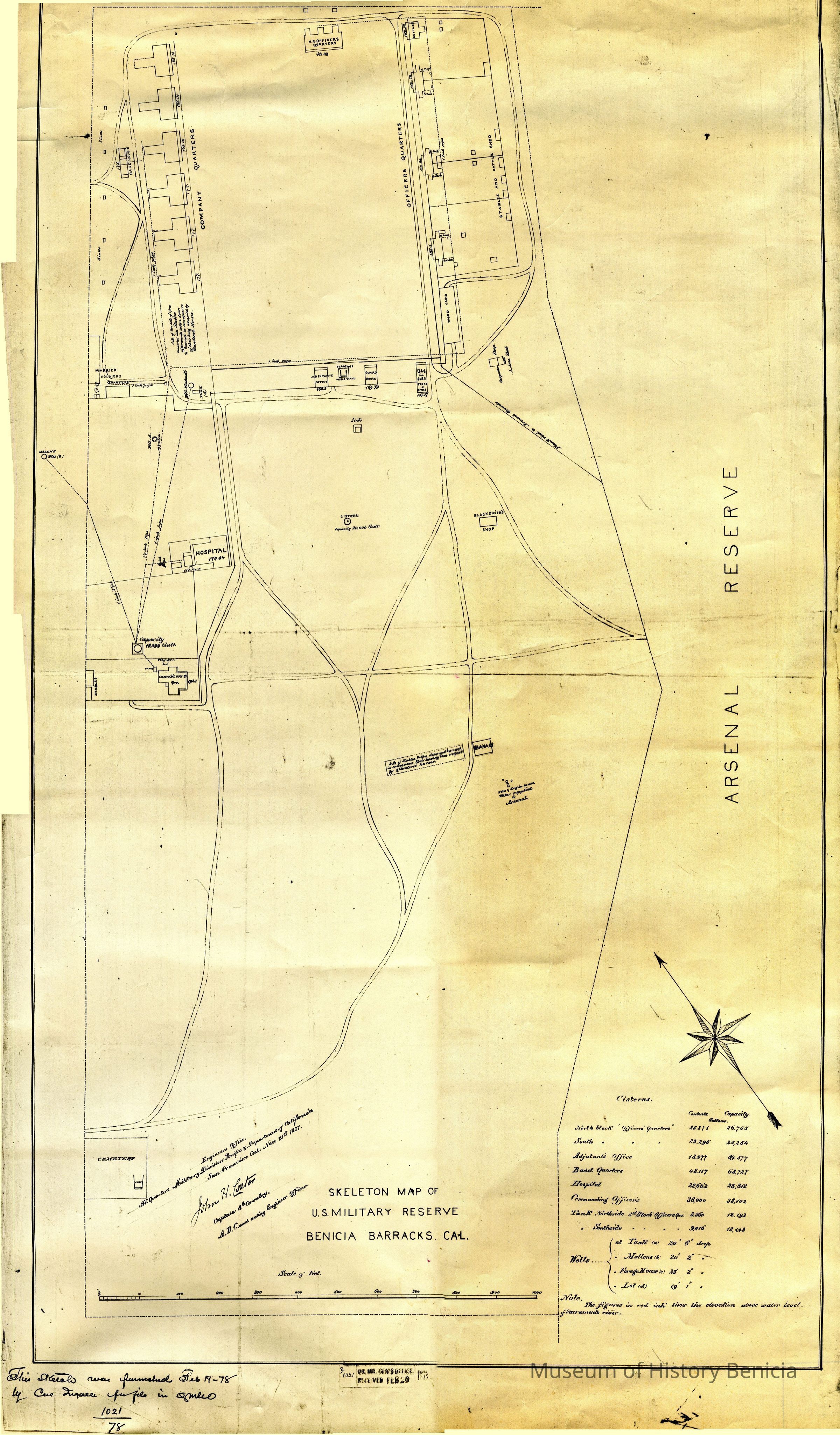 Skeleton Map of U.S. Military Reserve Benicia Barracks. CA. Furnished Feb. 19, 1878. It is a copy from The National Archives (#4)