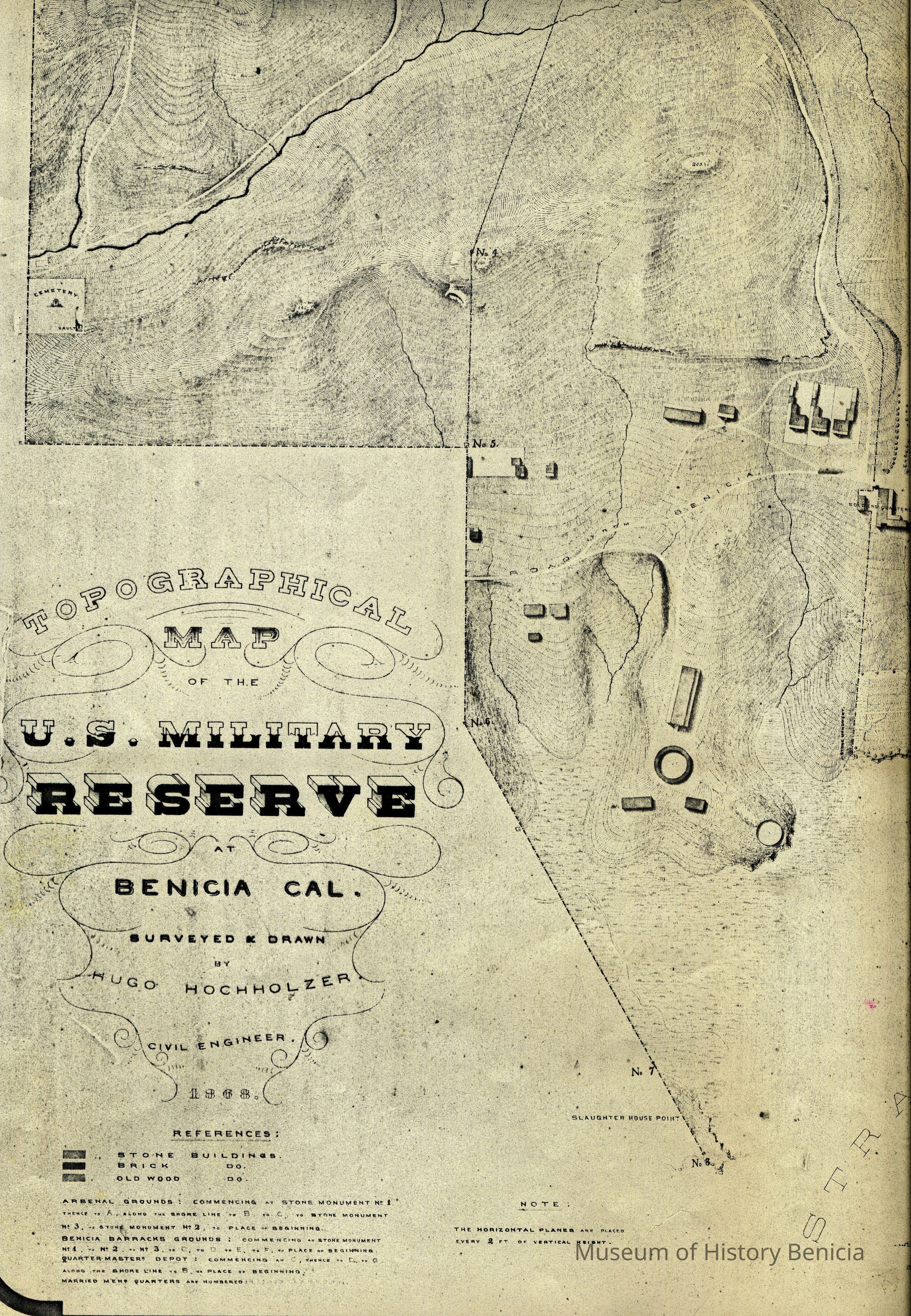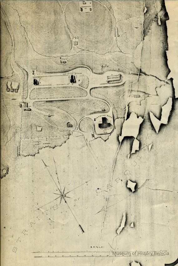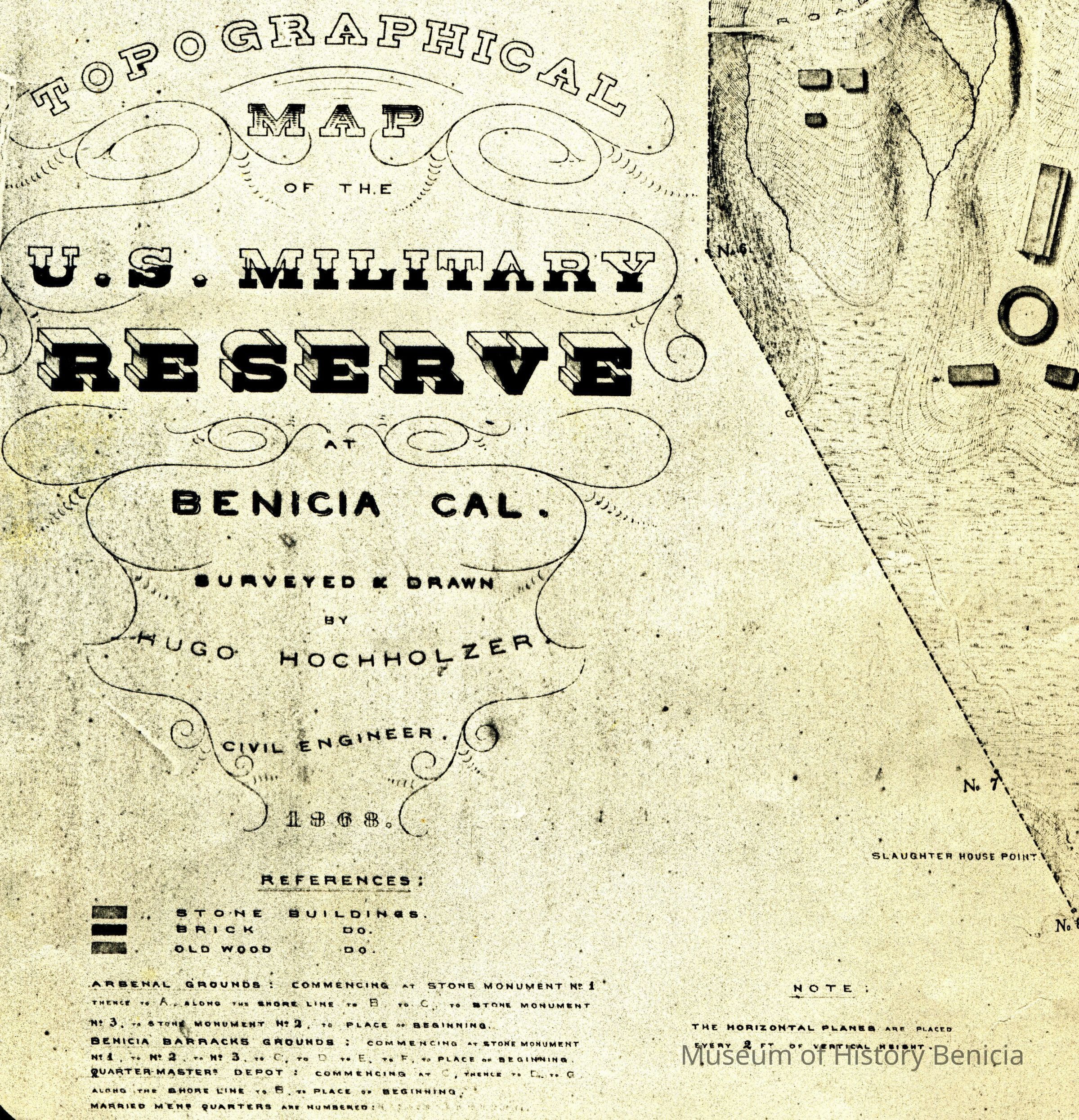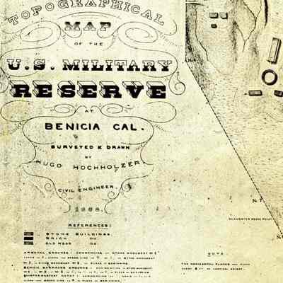 "Topographical map of the U.S. Military Reserve at Benicia, Cal." 1868. Surveyed and drawn by Hugo Hochnolzer