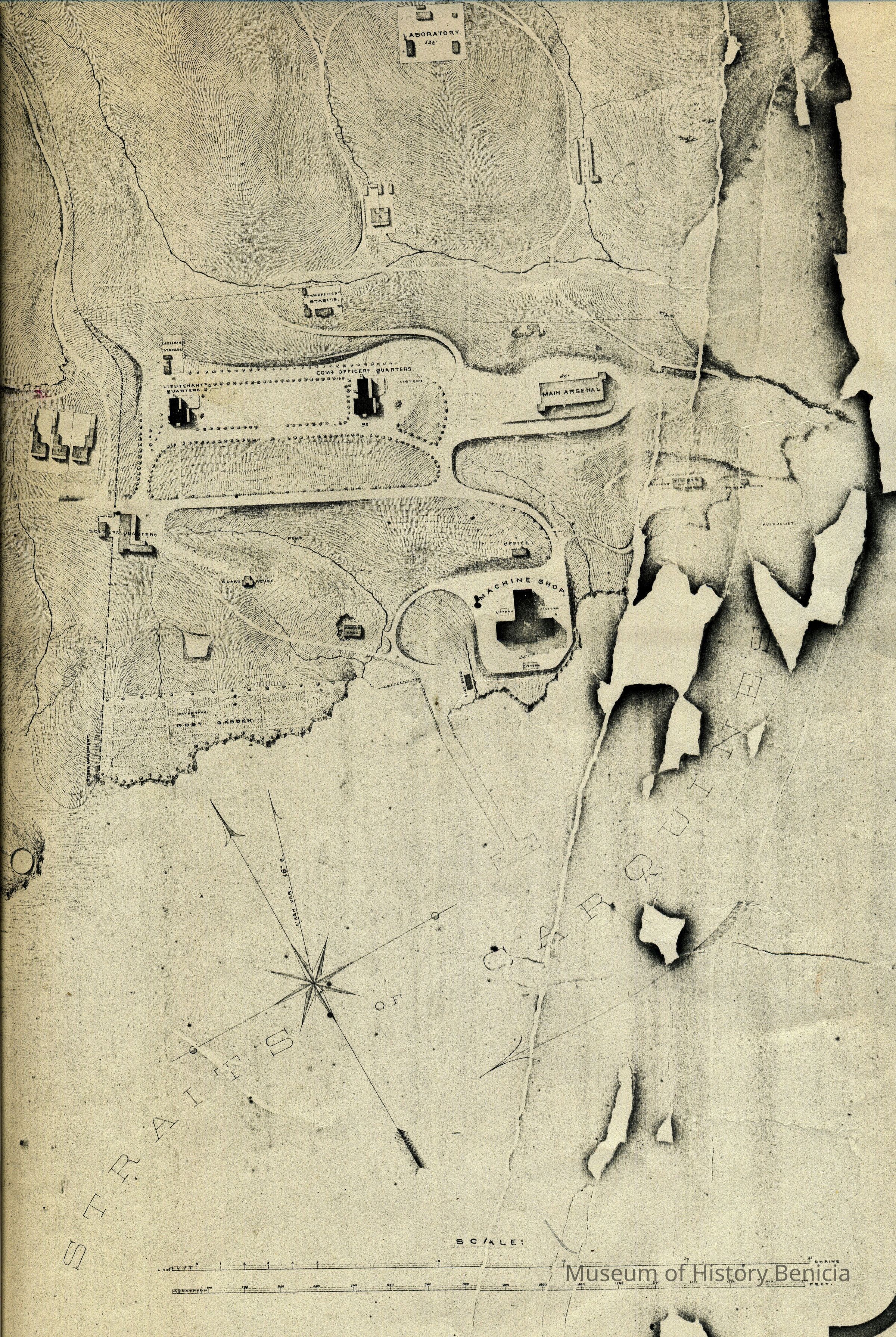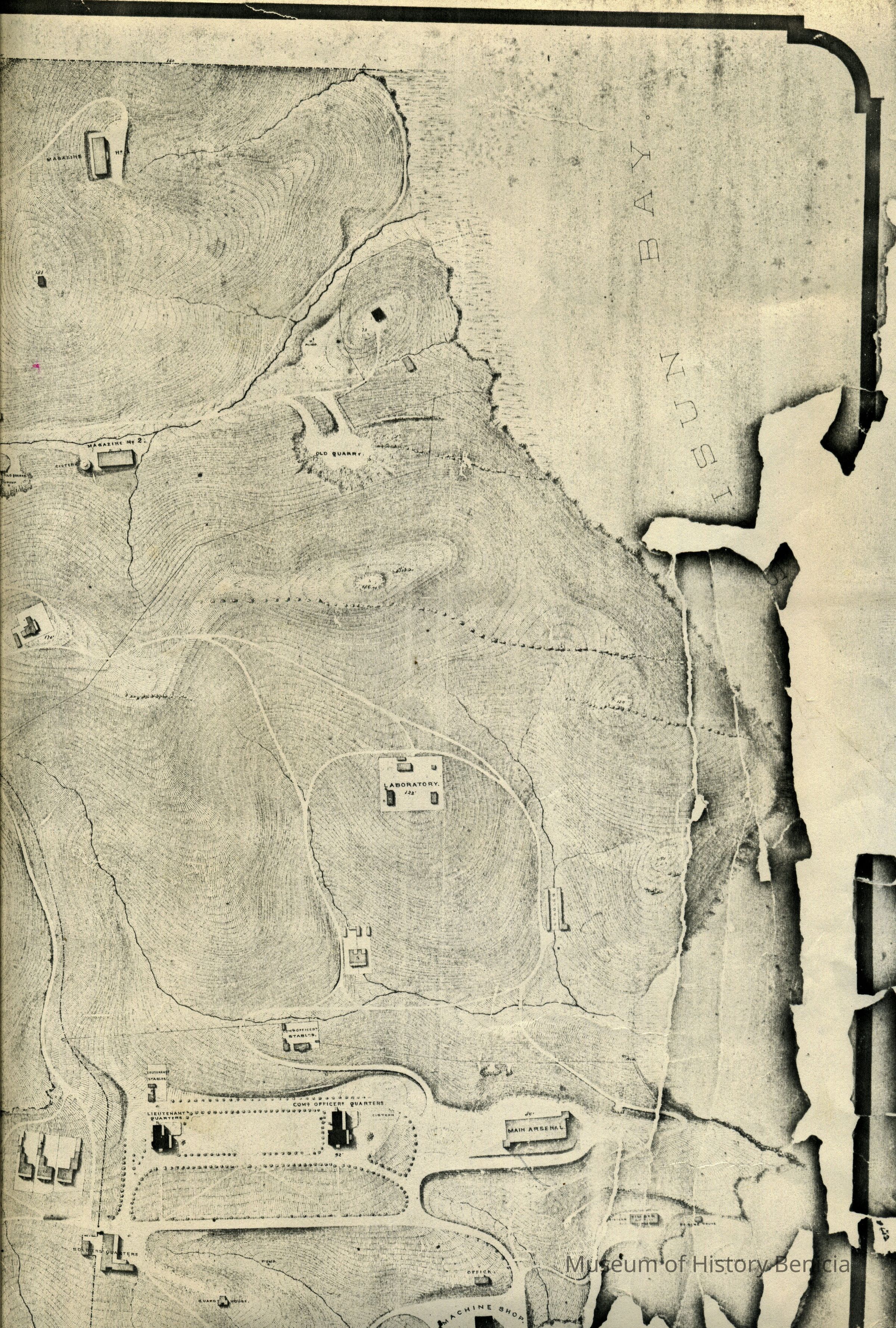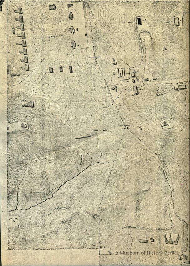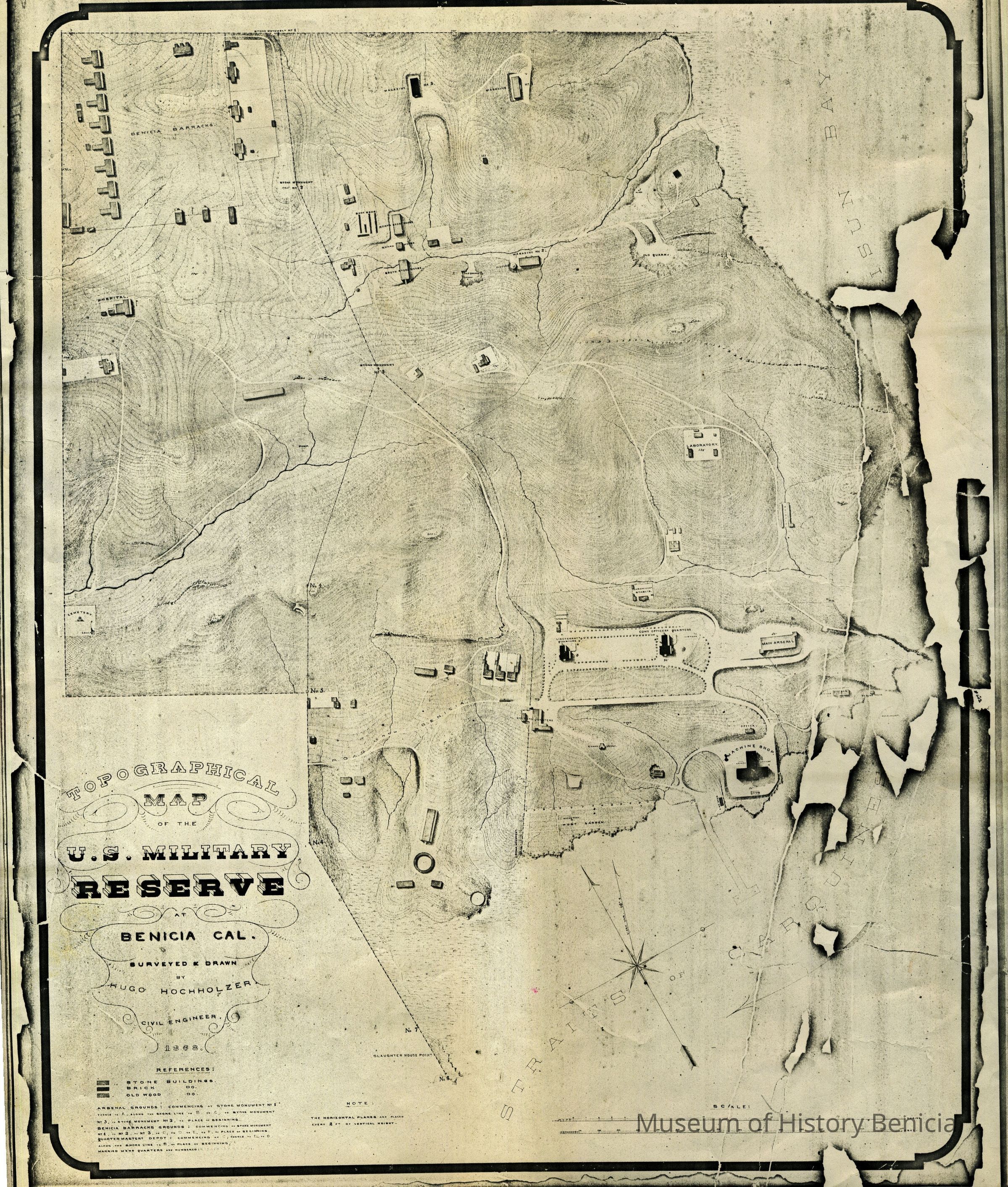 "Topographical map of the U.S. Military Reserve at Benicia, Cal." 1868. Surveyed and drawn by Hugo Hochnolzer