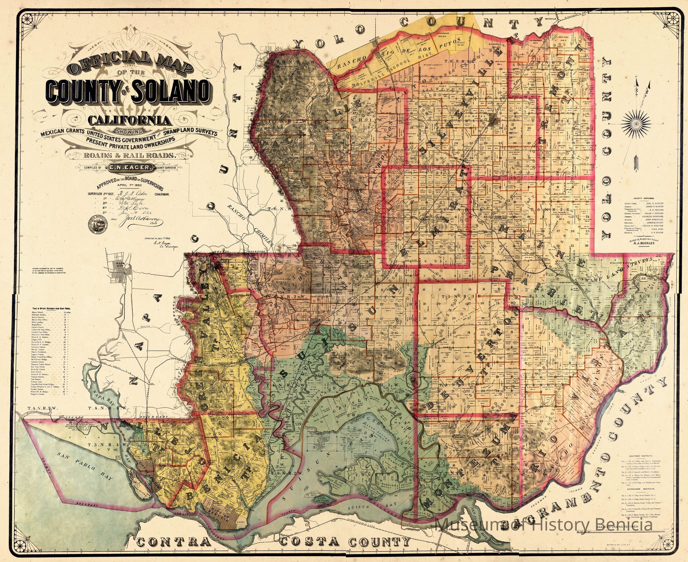 The map was created by the county surveyor E.N. Eacer as of 04/07/1890 and then updated as of 07/01/1890.