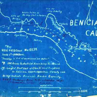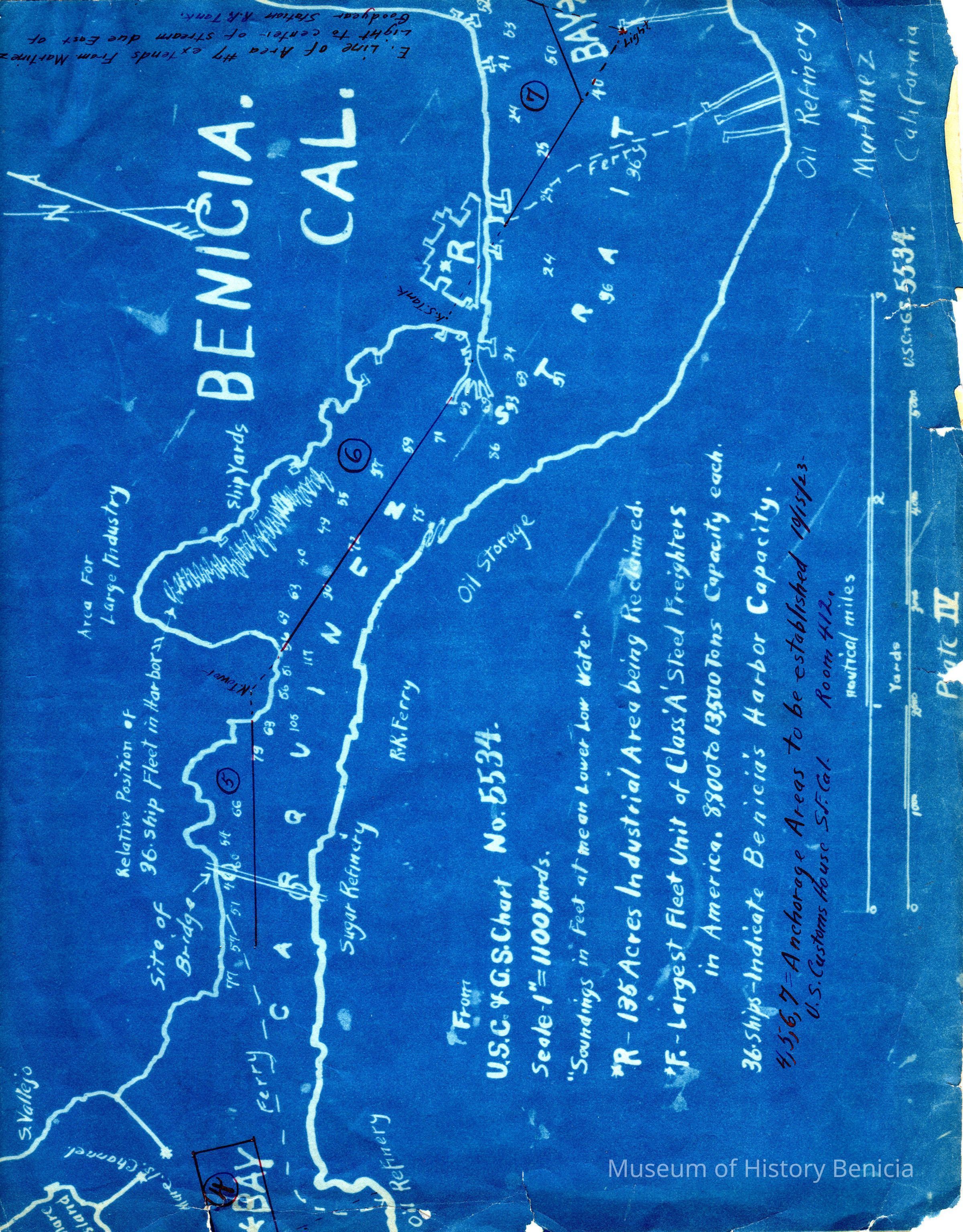 Map that goes with the public notice from the War Department re: a meeting 10/18/1923 about anchorage grounds in San Pablo Bay. Signed by Herbert Deakyne, Col Corps of Engineers.Collection