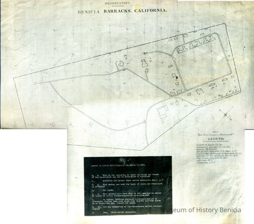 Reservation- Benicia Barracks, CA. Answer to letter M.S.O. Dept. of Cal. March 12, 1906. It is a copy from The National Archives (#8)