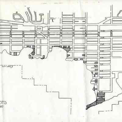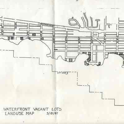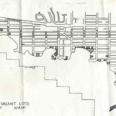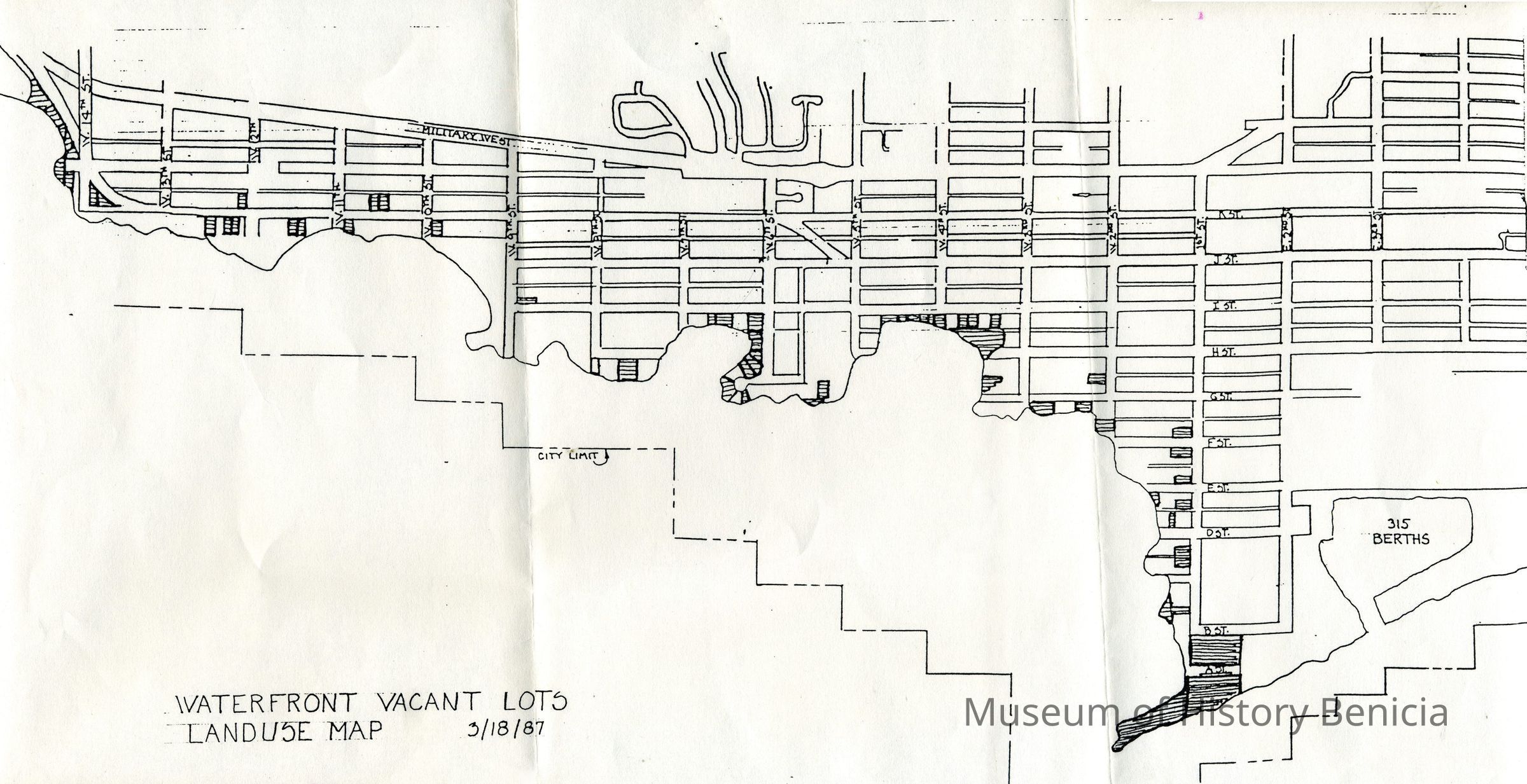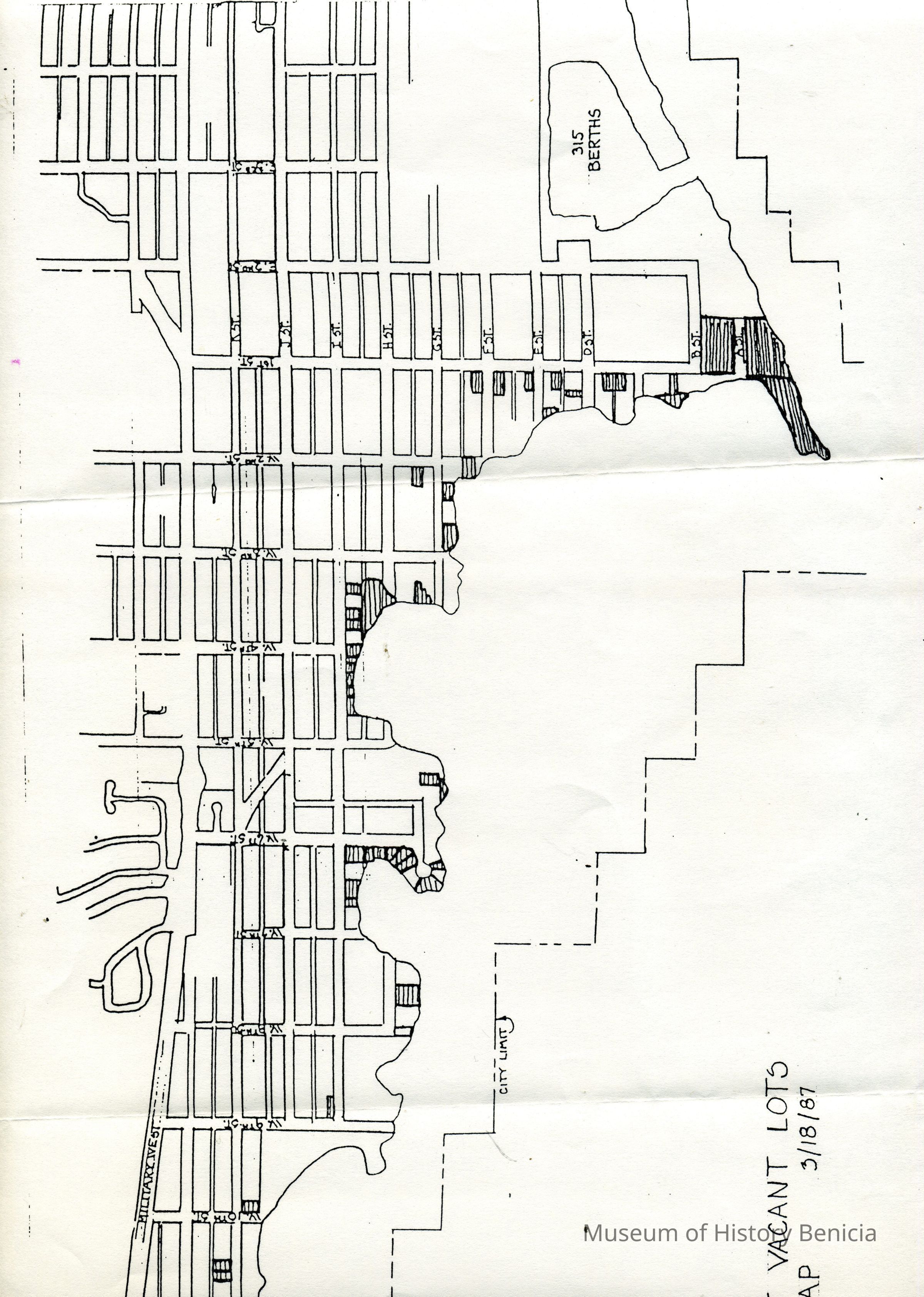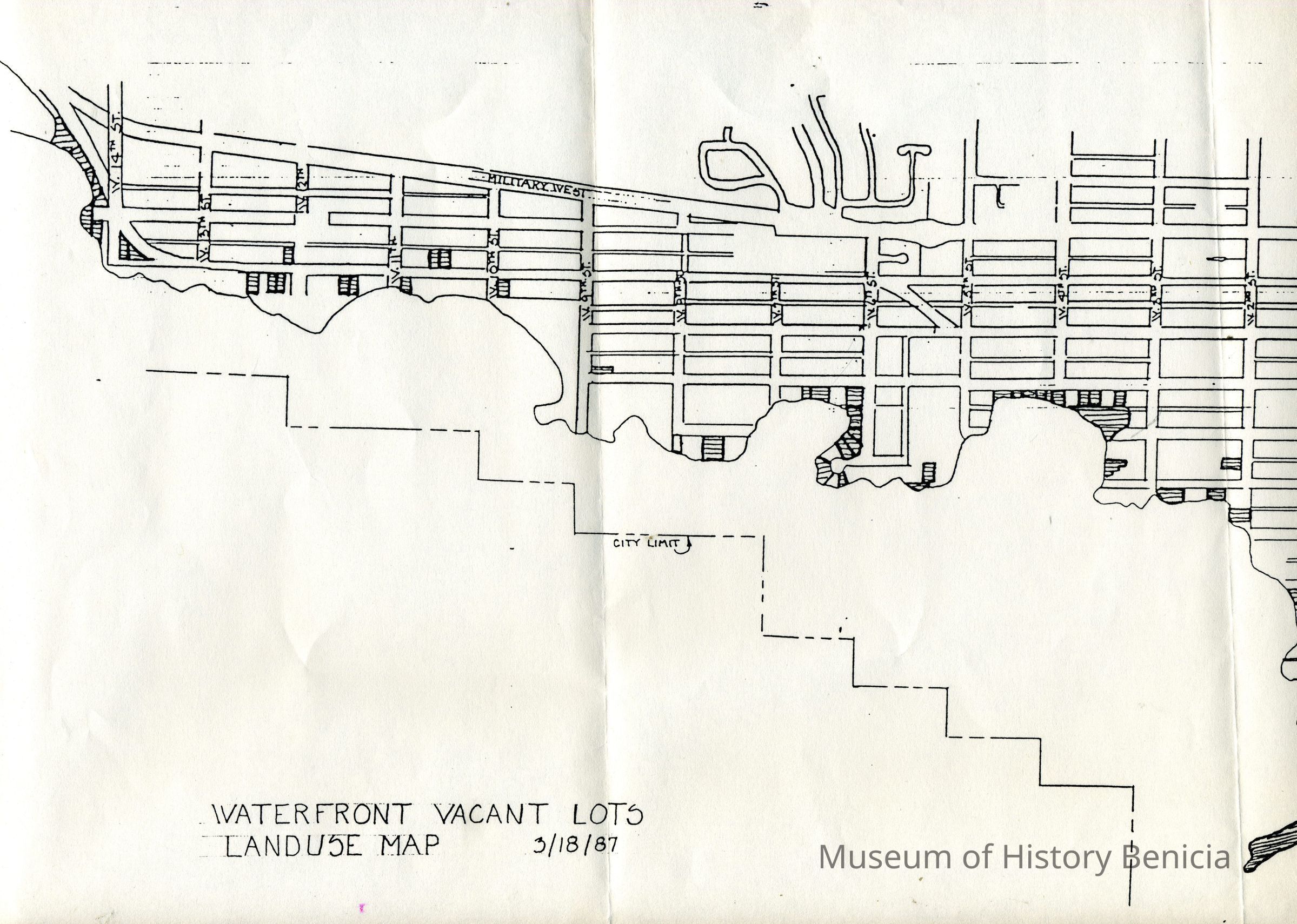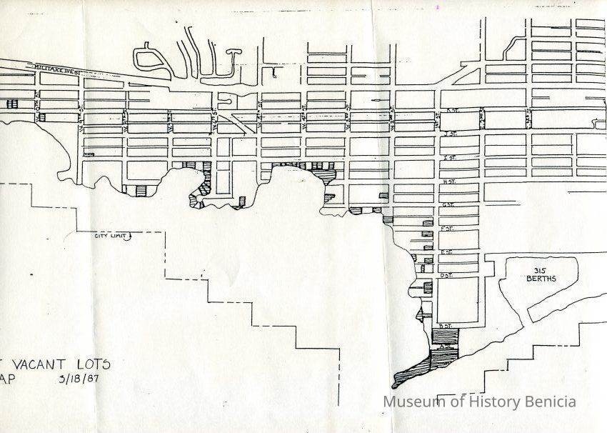 This is a map of the Benicia City waterfront lots that are vacant as of 03/18/1987.