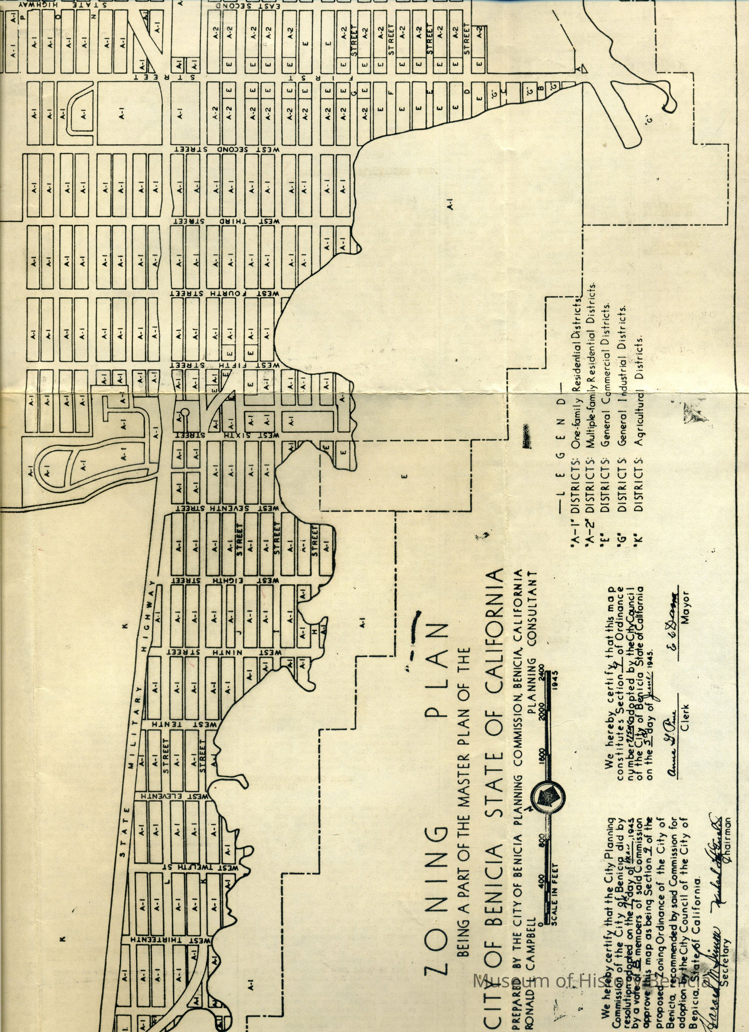 Map and Zoning Plan as Part of the Master Plan of the City of Benicia - State of California