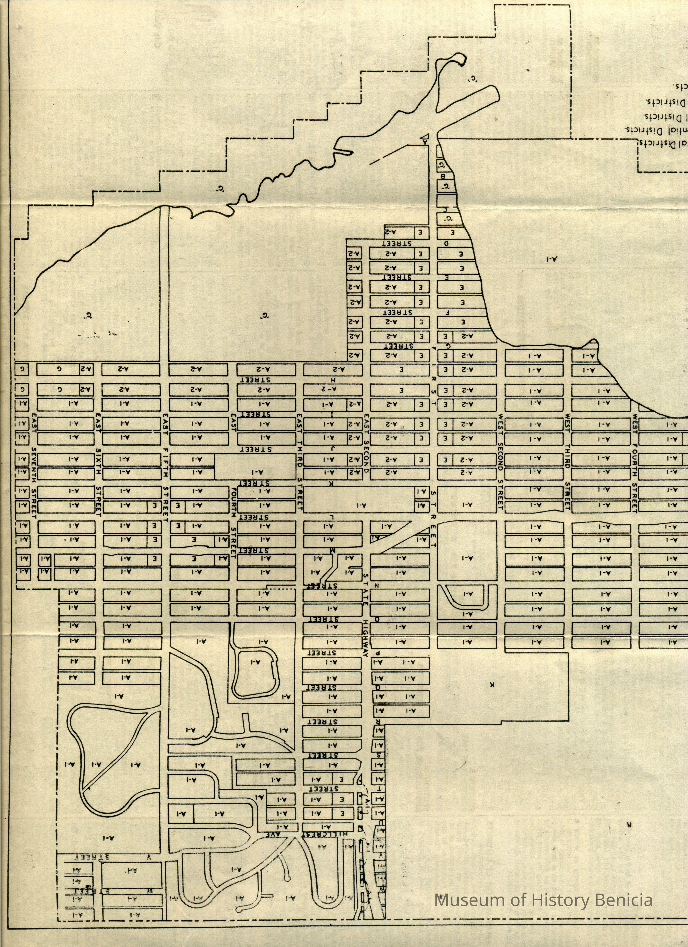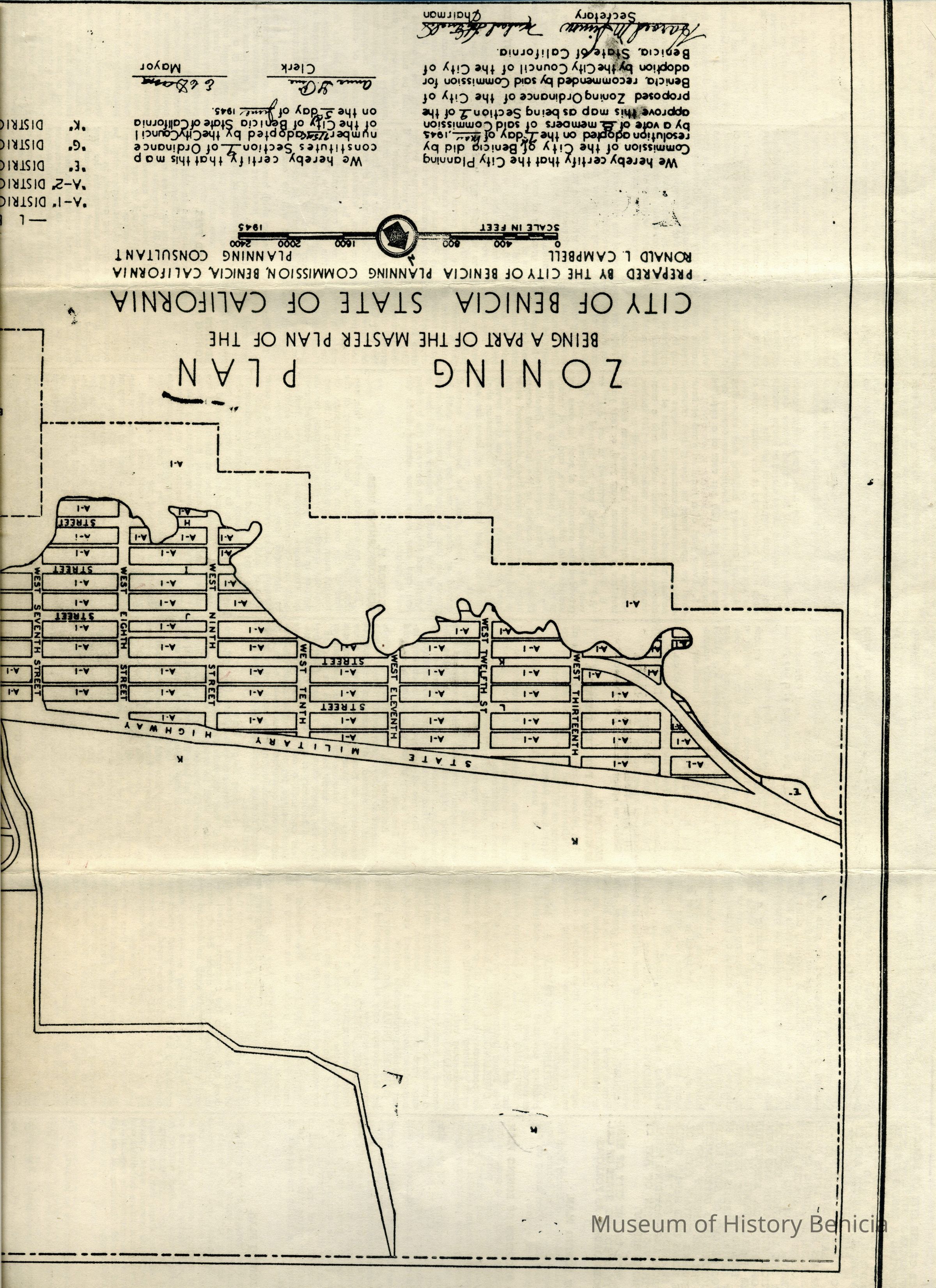 "Resolution adopted 7th day of May 1945 this map Section 9 of proposed zoning ordinance of City of Benicia..."