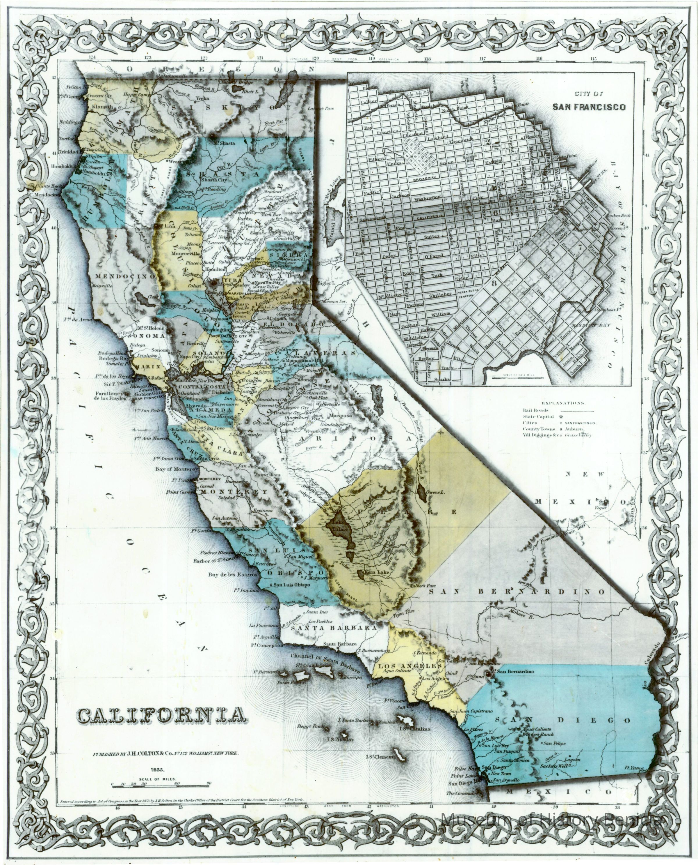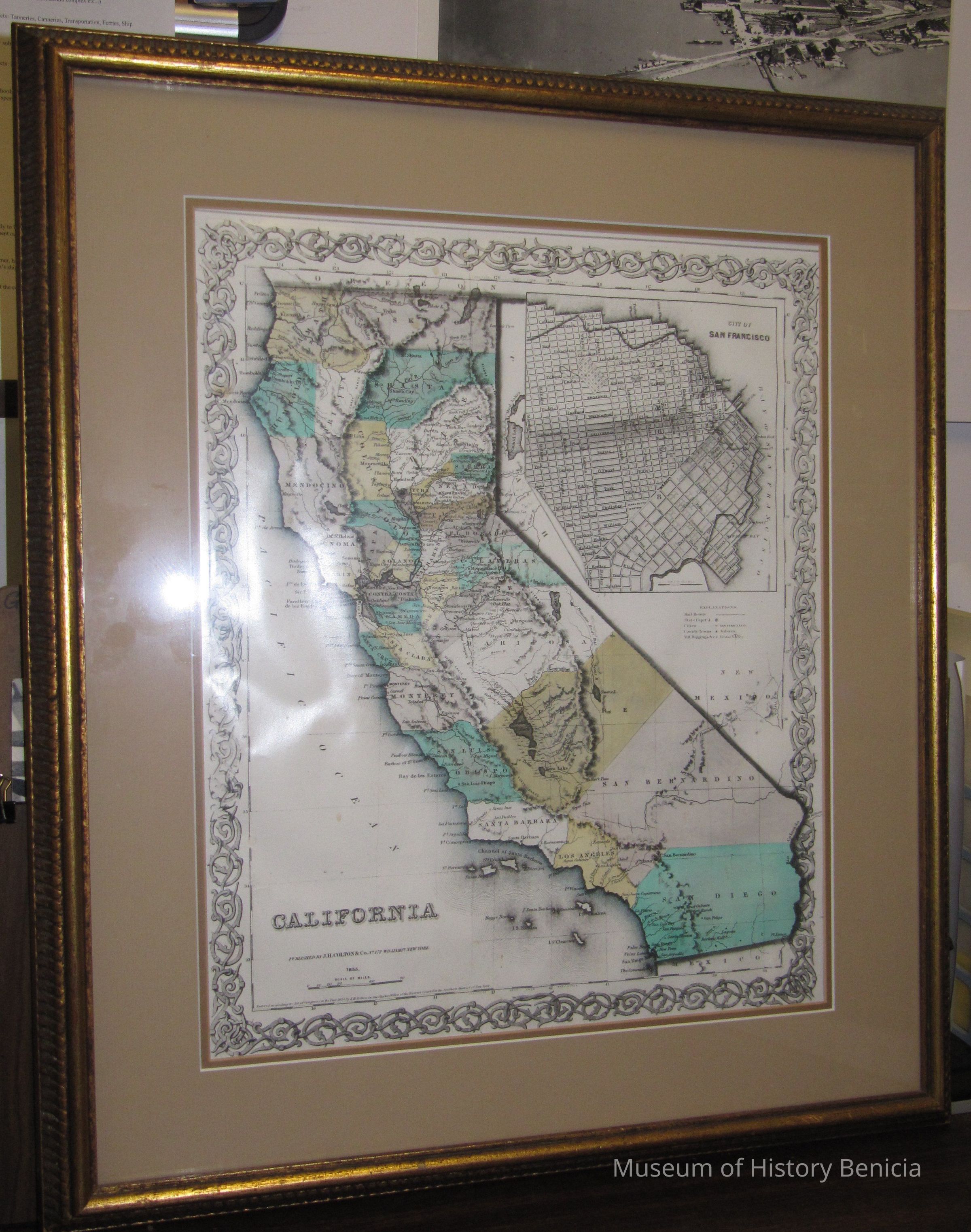 This is a copy of an 1853 map of California that shows the California State Capitol as Benicia. It is one of the only maps that shows Benicia as the State Capitol. The city of Benicia is spelled "Benecia".Collection