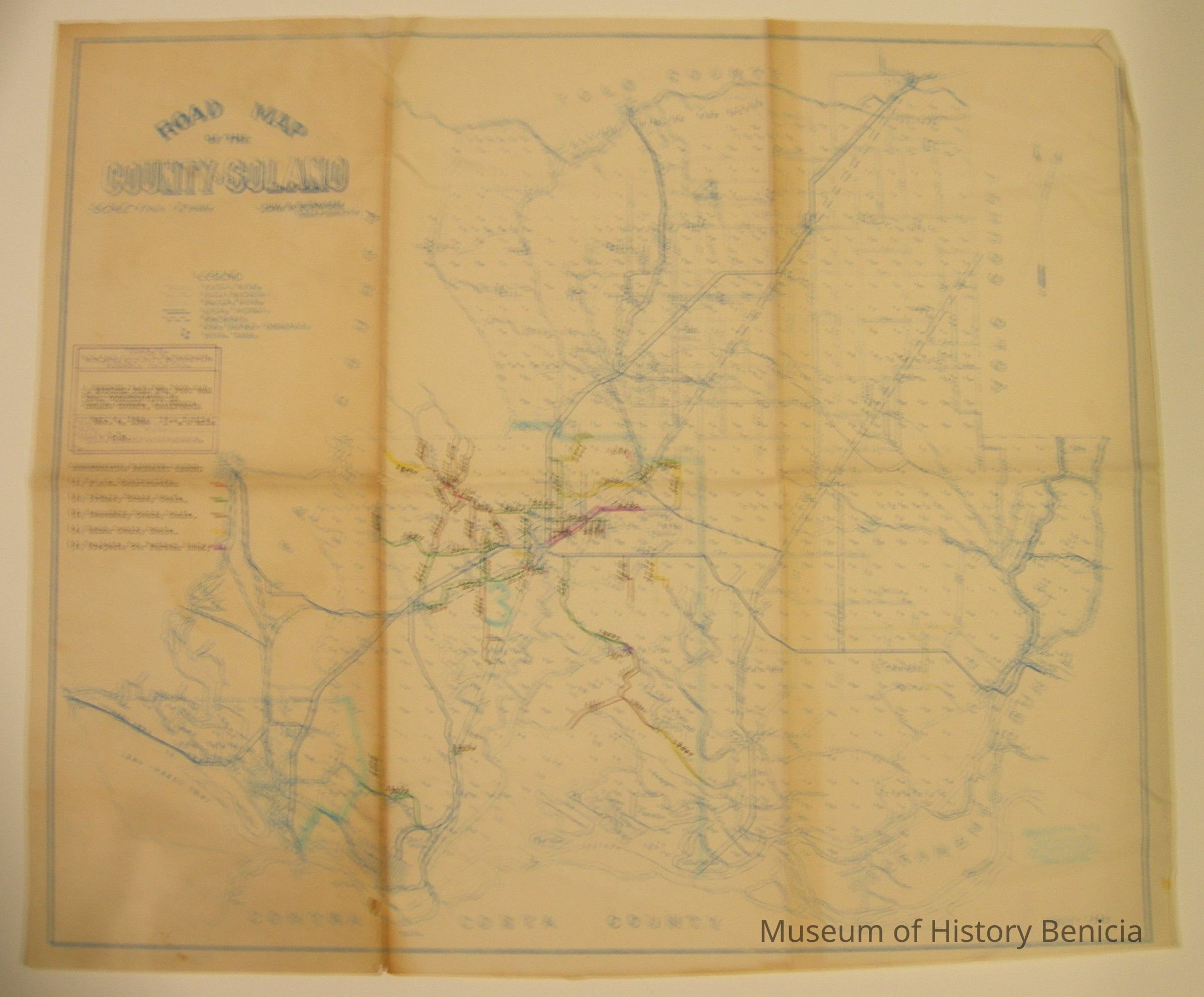 Map of Solano County from 1943. It says it is a plan for post war road construction in Solano County. dated 03/04/1946. Used for Solano County planning.Collection