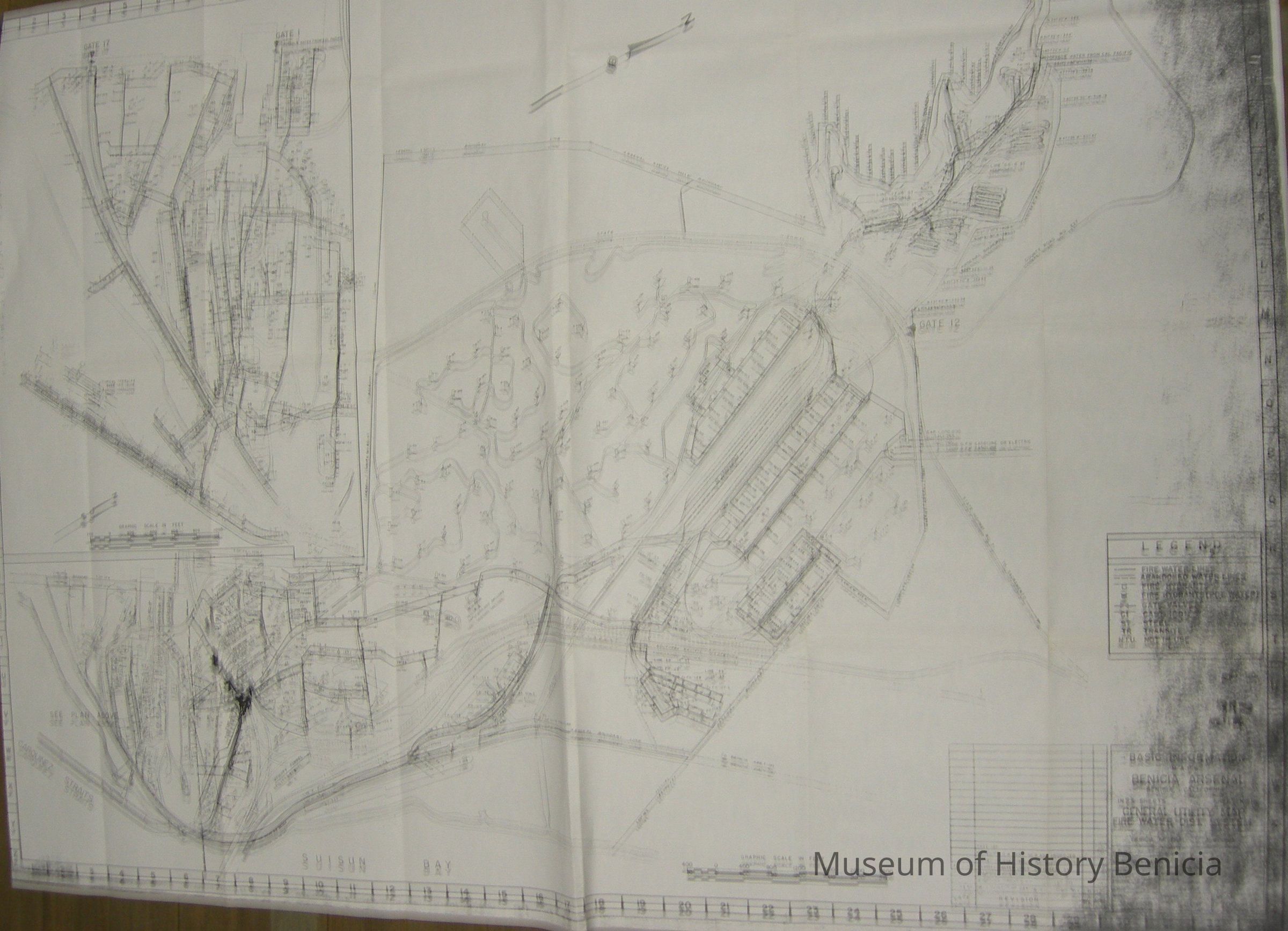 Photo copy of Basic Information Maps of Benicia Arsenal, In 23 sheets, Sheet No. 15 General Utility Map Fire Water Dist. System.... Jan 1958 Drawing 6006 File 7001-13 Stamped 1985Collection