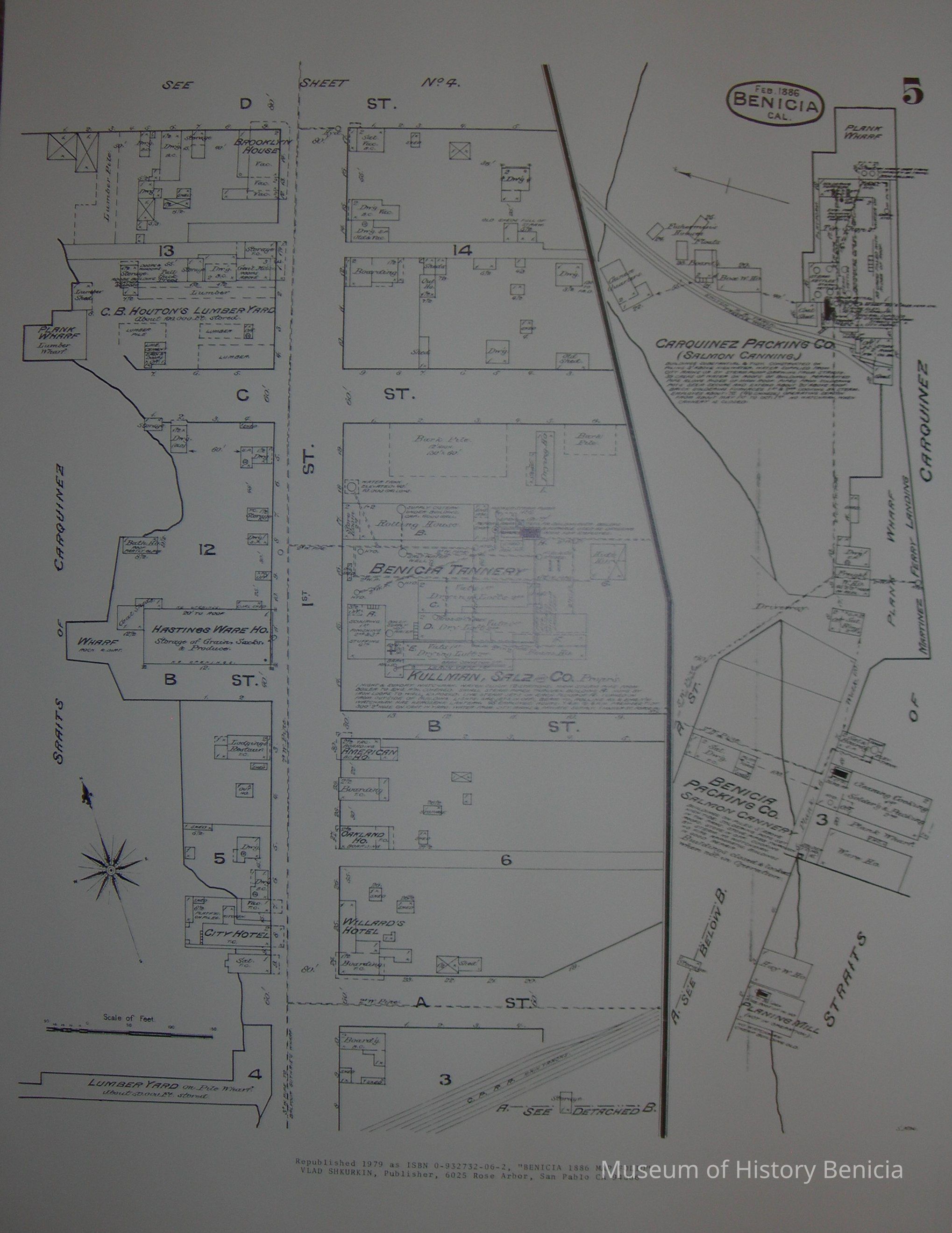 Sheet Five of Benicia Map Folio - Sanborn Map & Publishing Co. Limited, February 1886, republished in 1979 by Vlad Shkurkin, publisher.