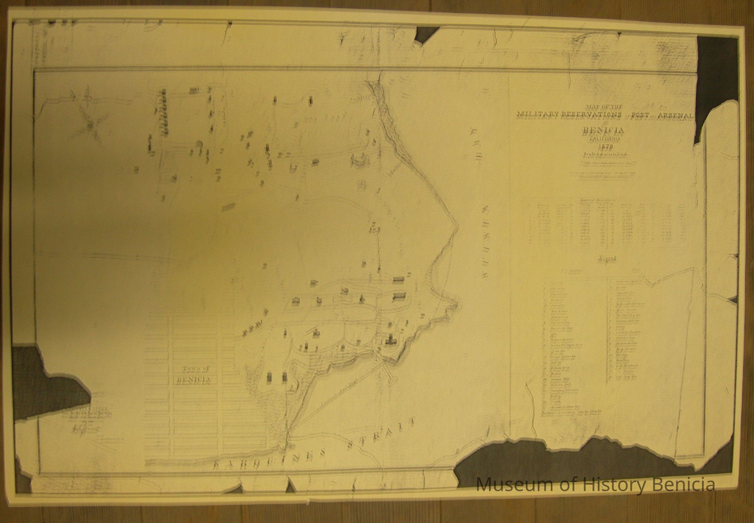 Map of the Military Reservation of Post and Arsenal in 1879. Map lists buildings and boundaries Maker: Presidio of San Francisco size: 16" x 25"
