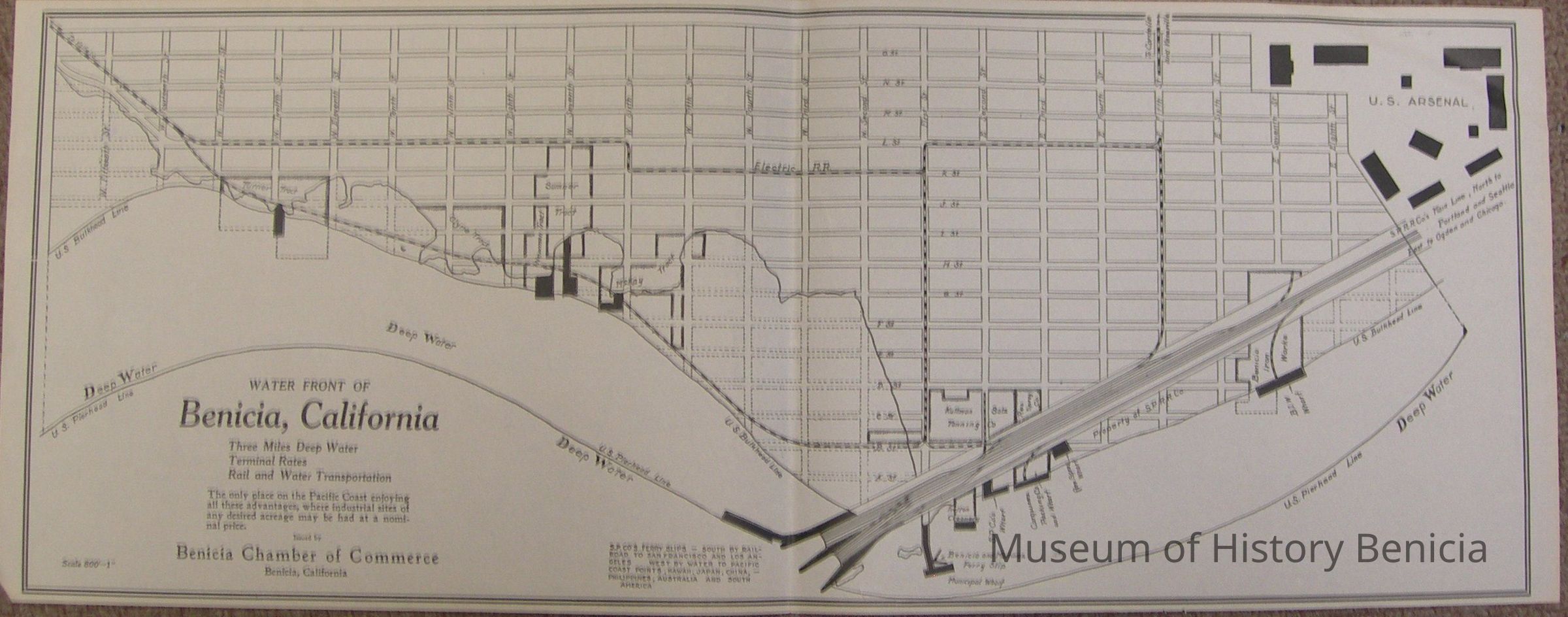 "Three Miles Deep Water / Terminal Rates / Rail and Water Transportation...The only place on the Pacific Coast enjoying all these advantages, where industrial sites of any desired acreage may be had at a nominal price."