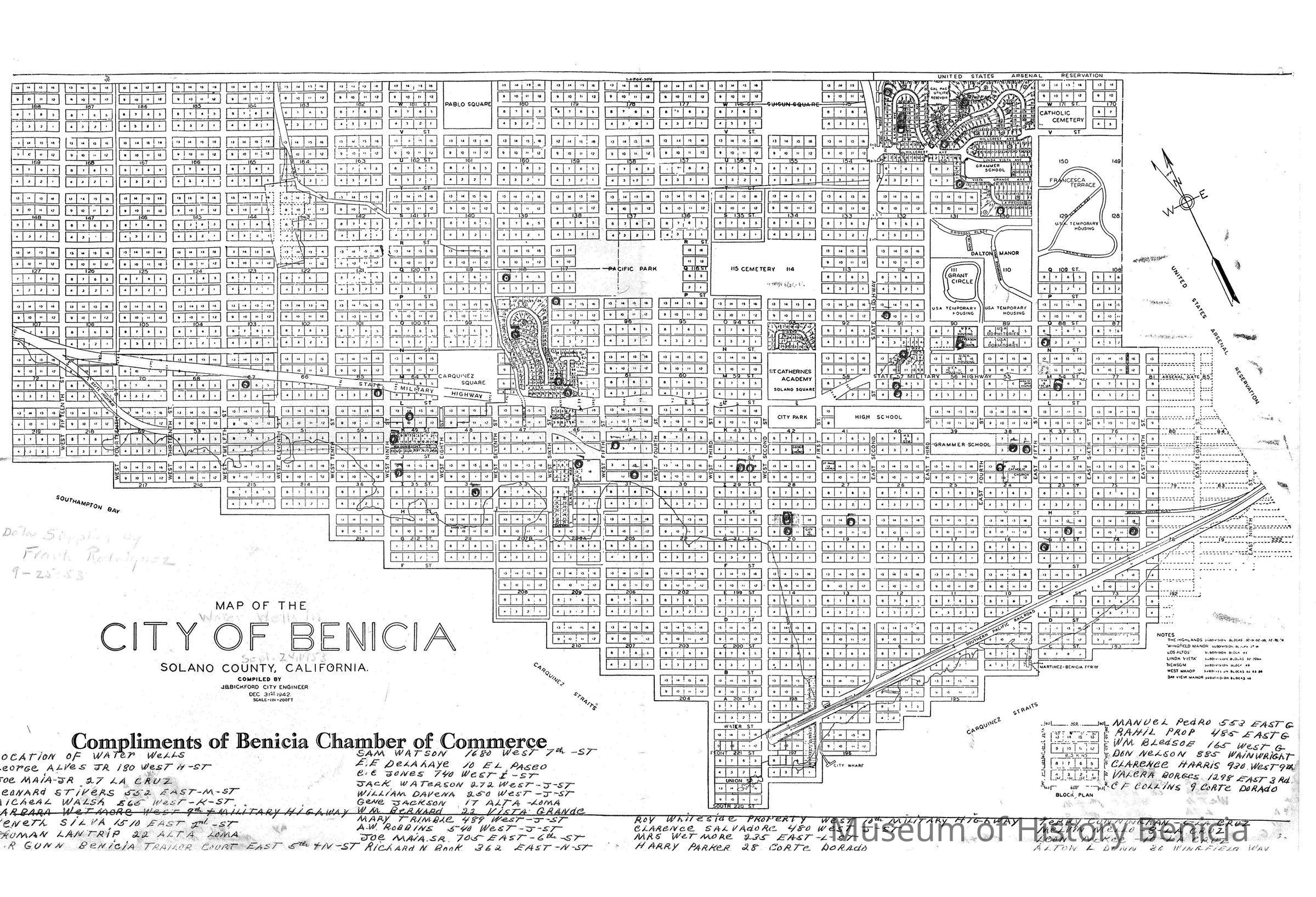 Compiled by J.B. Bickford, City Engineer, Dec. 31, 1942