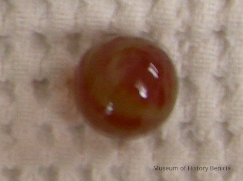 Round marble - shiny surface, amber color with some lighter streaks; 5/8" diameter