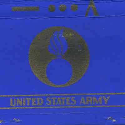 on back is ordnance symbol in blue on gold circle and beneath between gold lines, in gold: "United States Army".