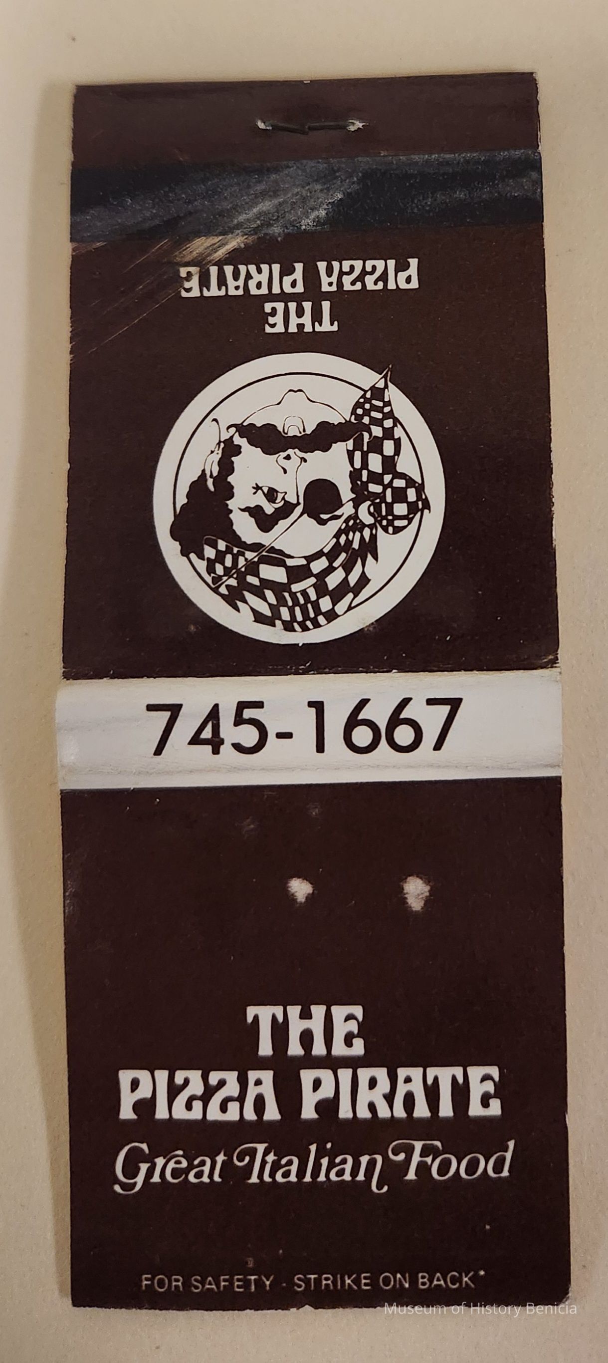 Brown matchbook with "The Pizza Pirate - Great Tasting Italian Food" on it.
