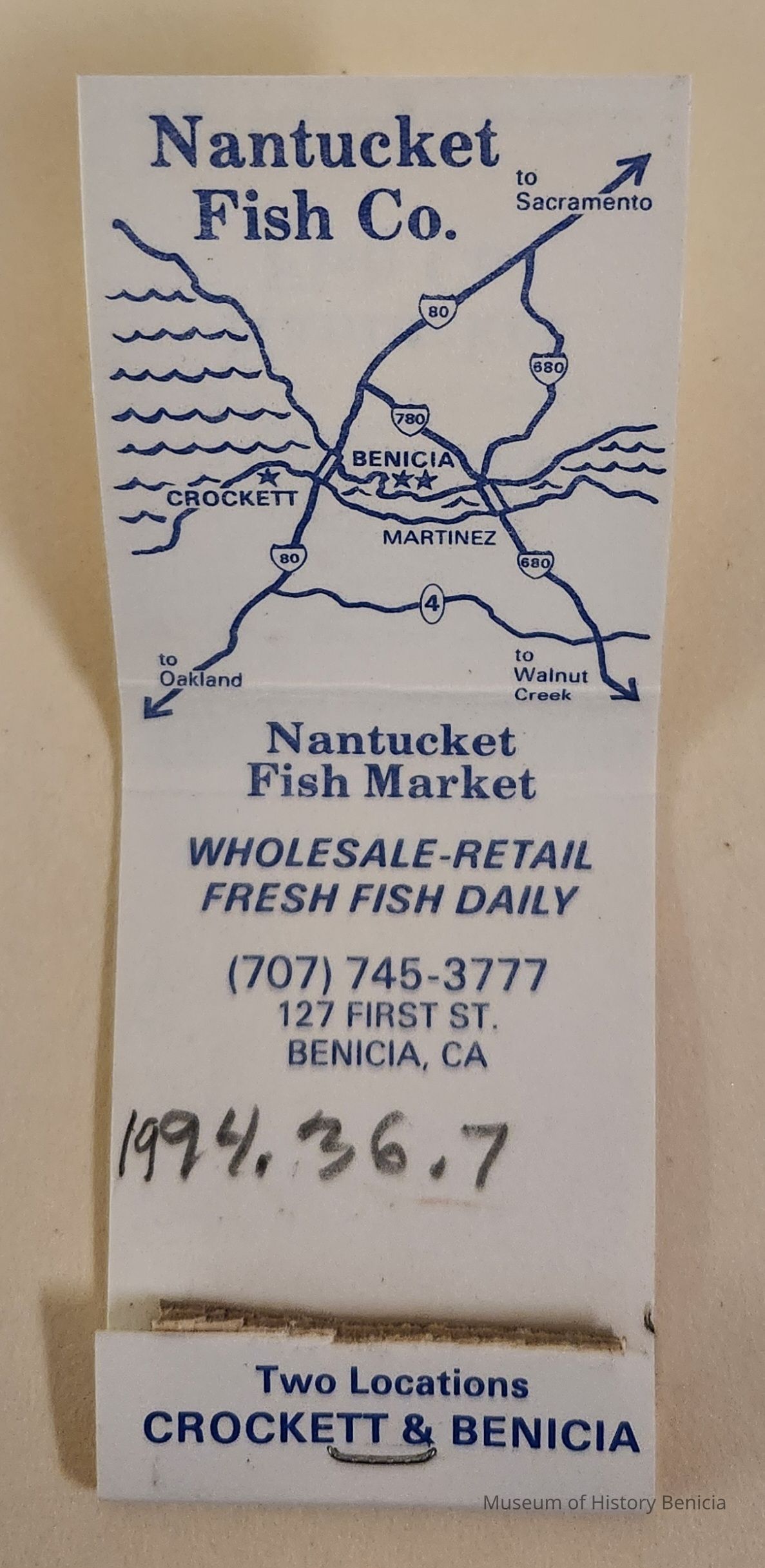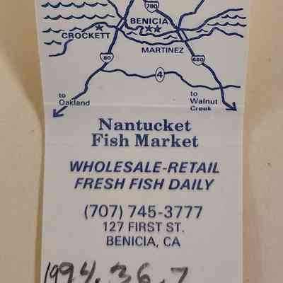 Nantucket FIsh Co. Two Locations Crokett + Benicia - White & blue cover.