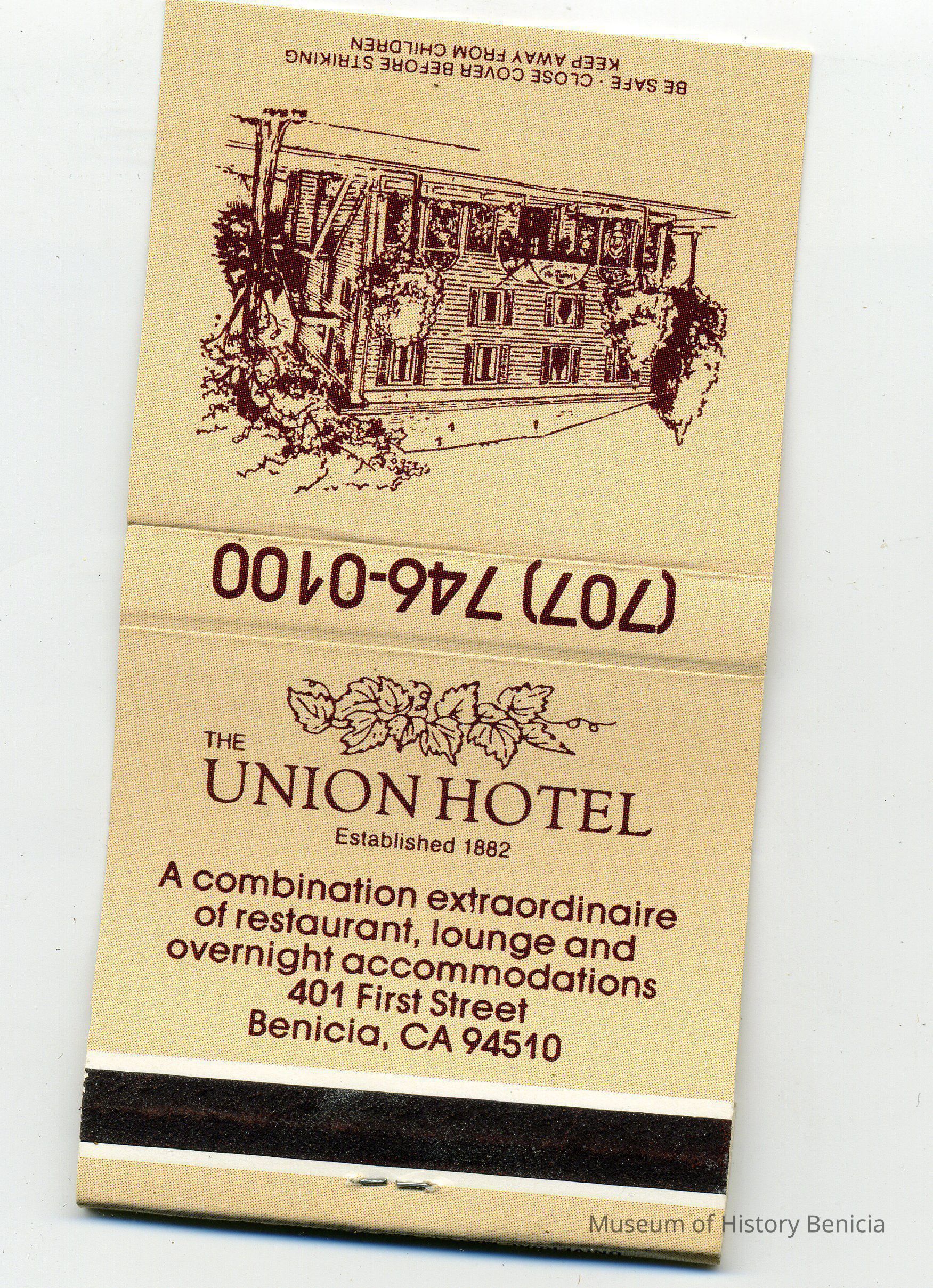 Matchbook cover from the Union Hotel.