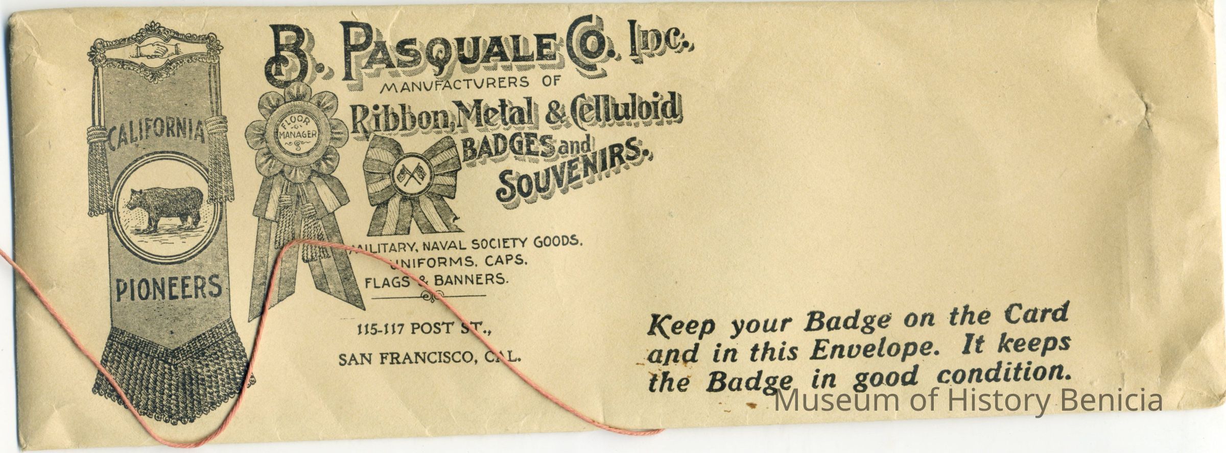 The medal was made by the B. Pasquale Co. Inc of San Francisco. It was still in the original envelope.Collection